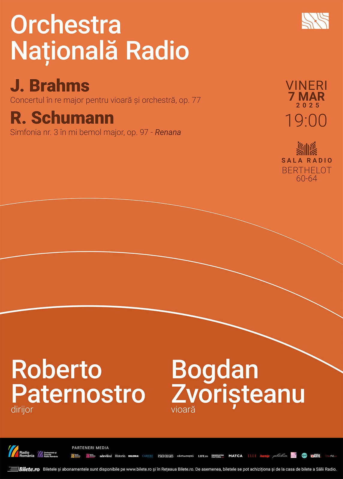 În continuarea proiectului inițiat de Orchestra Națională Radio de a aduce la București violoniști români aplaudați în cadrul unor mari orchestre internaționale, al doilea invitat al serii este violonistul Bogdan Zvorișteanu, care va interpreta Brahms: Concertul în re major pentru vioară și orchestră.