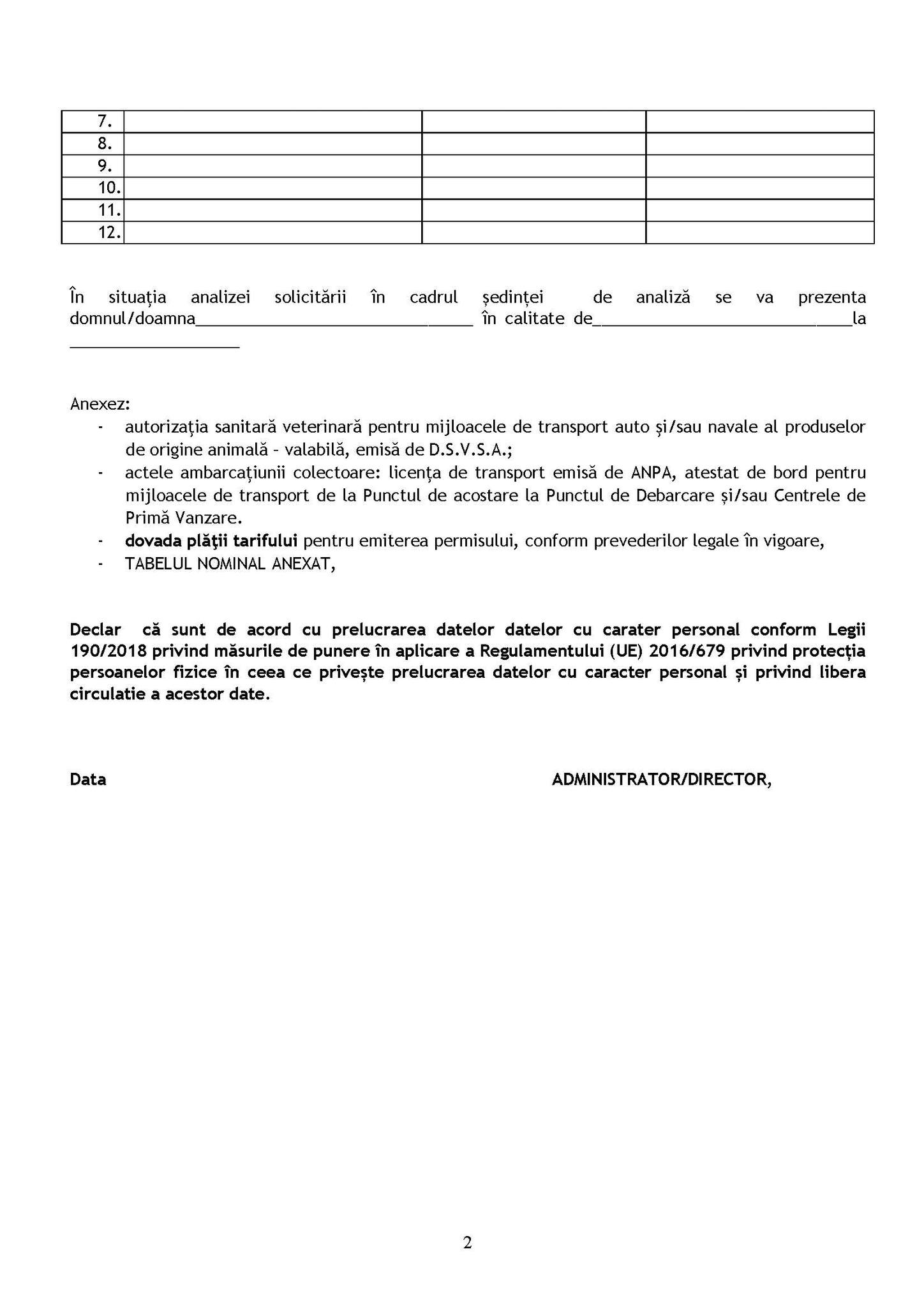 – tabelul cu pescarii care dețin contracte de colaborare cu PD/ CPV-uri autorizate