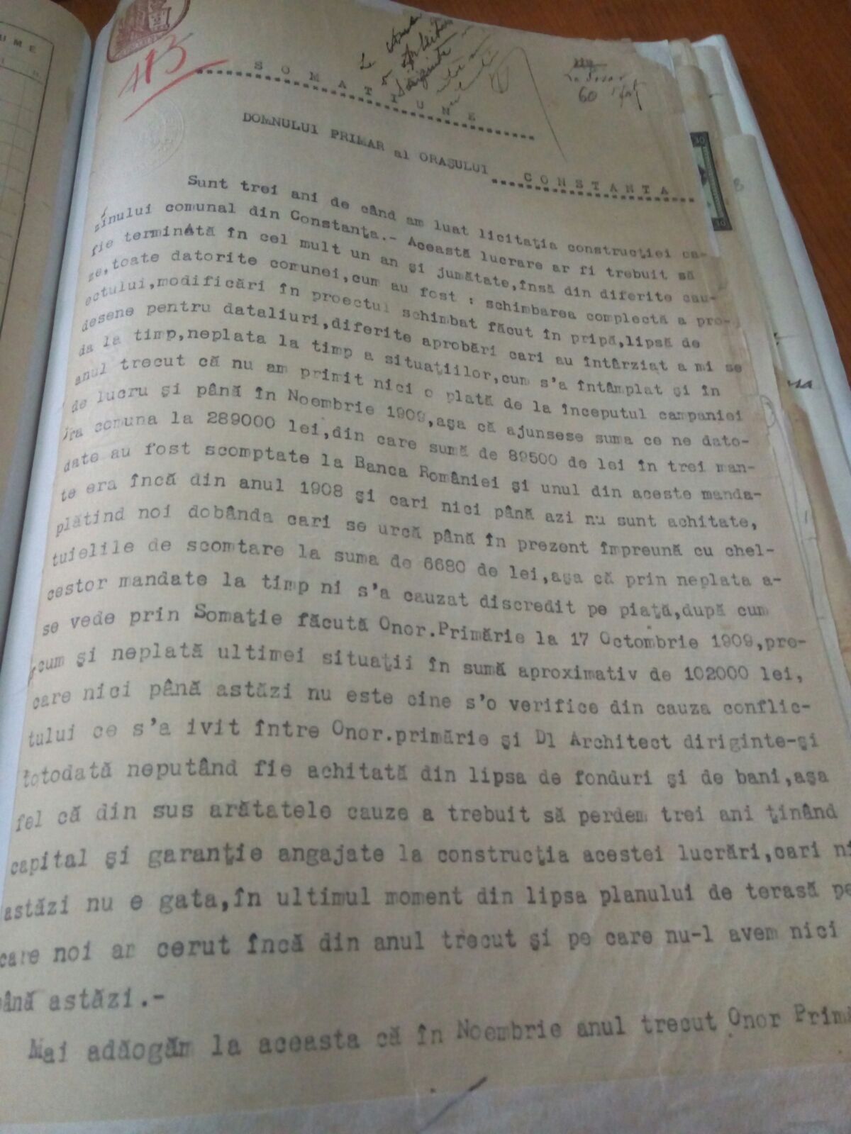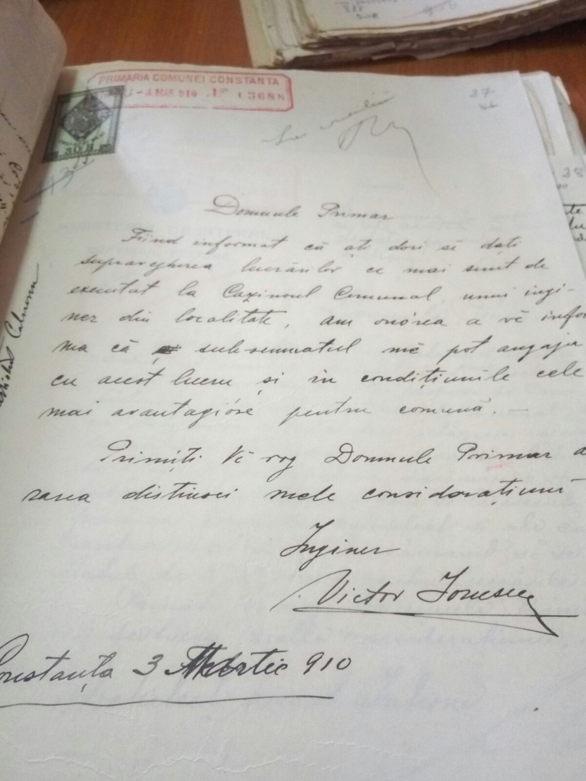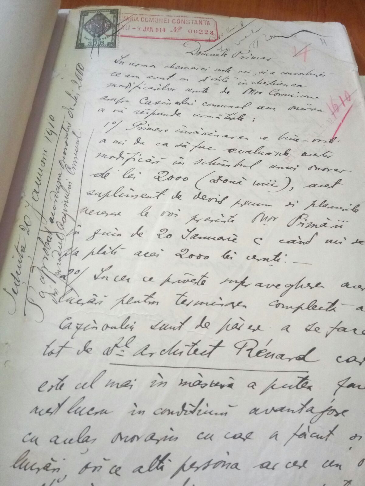 În privinţa Casinului Comunal, a halei şi abatorului, administraţia comunală provocând o concurenţă de oferte pentru facerea proiectelor definitive, cu toate accesoriile lor, devize, caiete de sarcini şi altele cu conducerea lucrărilor consiliul a preferat… între ofertele domnilor arhitecţi D. Maimarolu şi Daniel Renard pe acestuia din urmă, român după mama domniei sale, fost colaborator la construcţia Pavilionului Român de la Expoziţia din Paris, (…) pentru că şede în Constanţa şi nu va abandona lucrările în seama altora.
