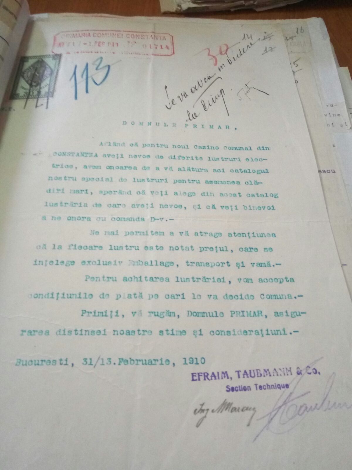 Fragmentul apare în Studiul Istoric Cazinoul Comunal Constanța scris de istoricul Cezara Mucenic.