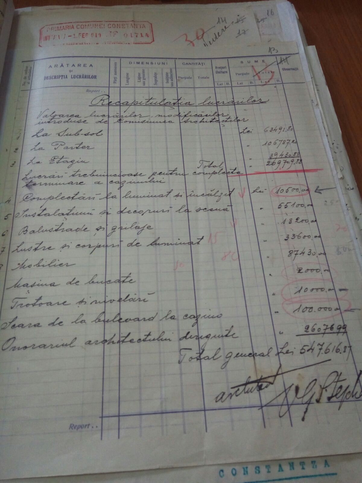 După nenumărate modificări și reproiectări la cererea oficialilor din primărie, Daniel Renard termină clădirea Cazinoului. Nu cu 270.000 de lei cât s-a preconizat la început, ci cu suma de 1.200.000 de lei.