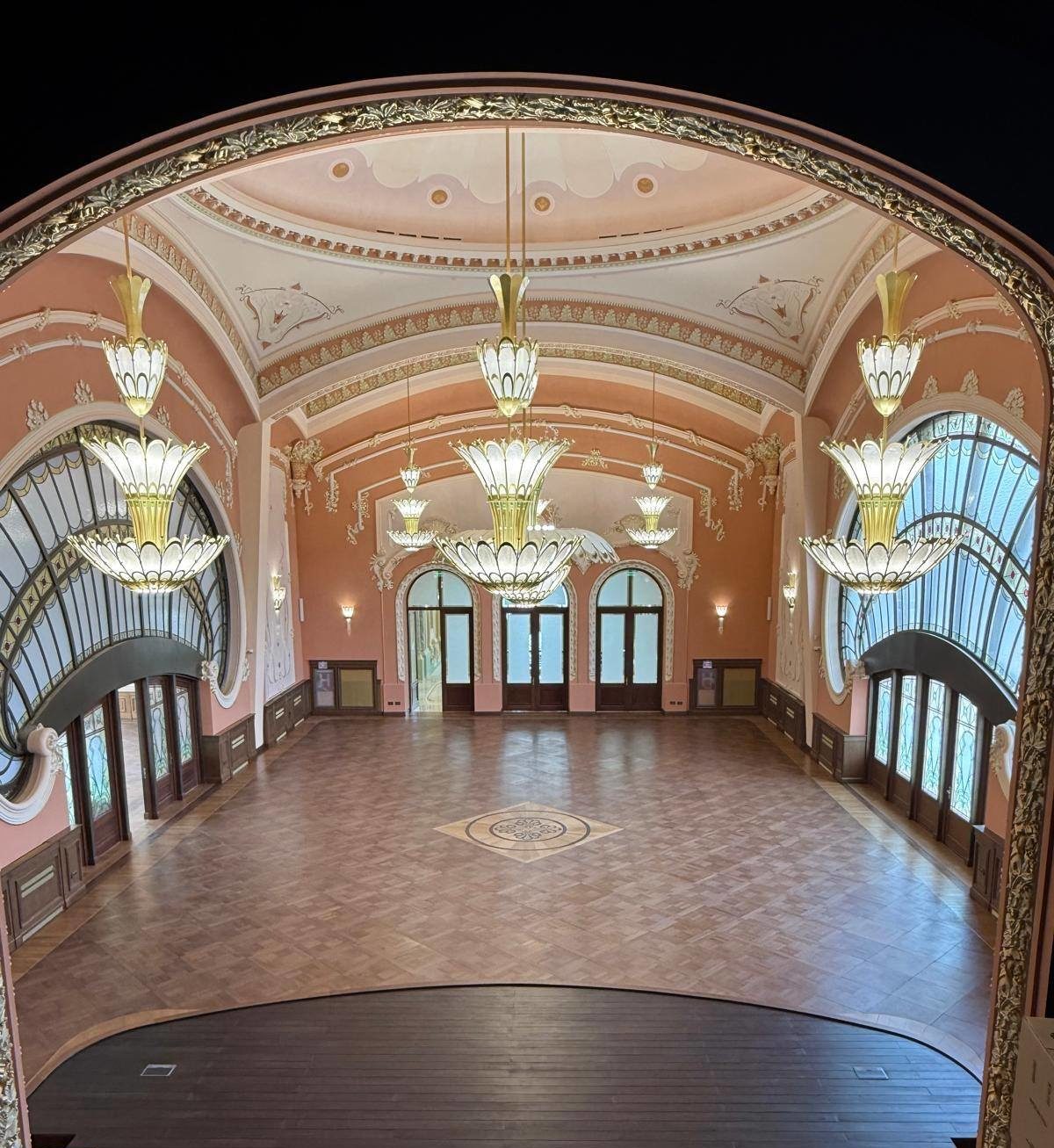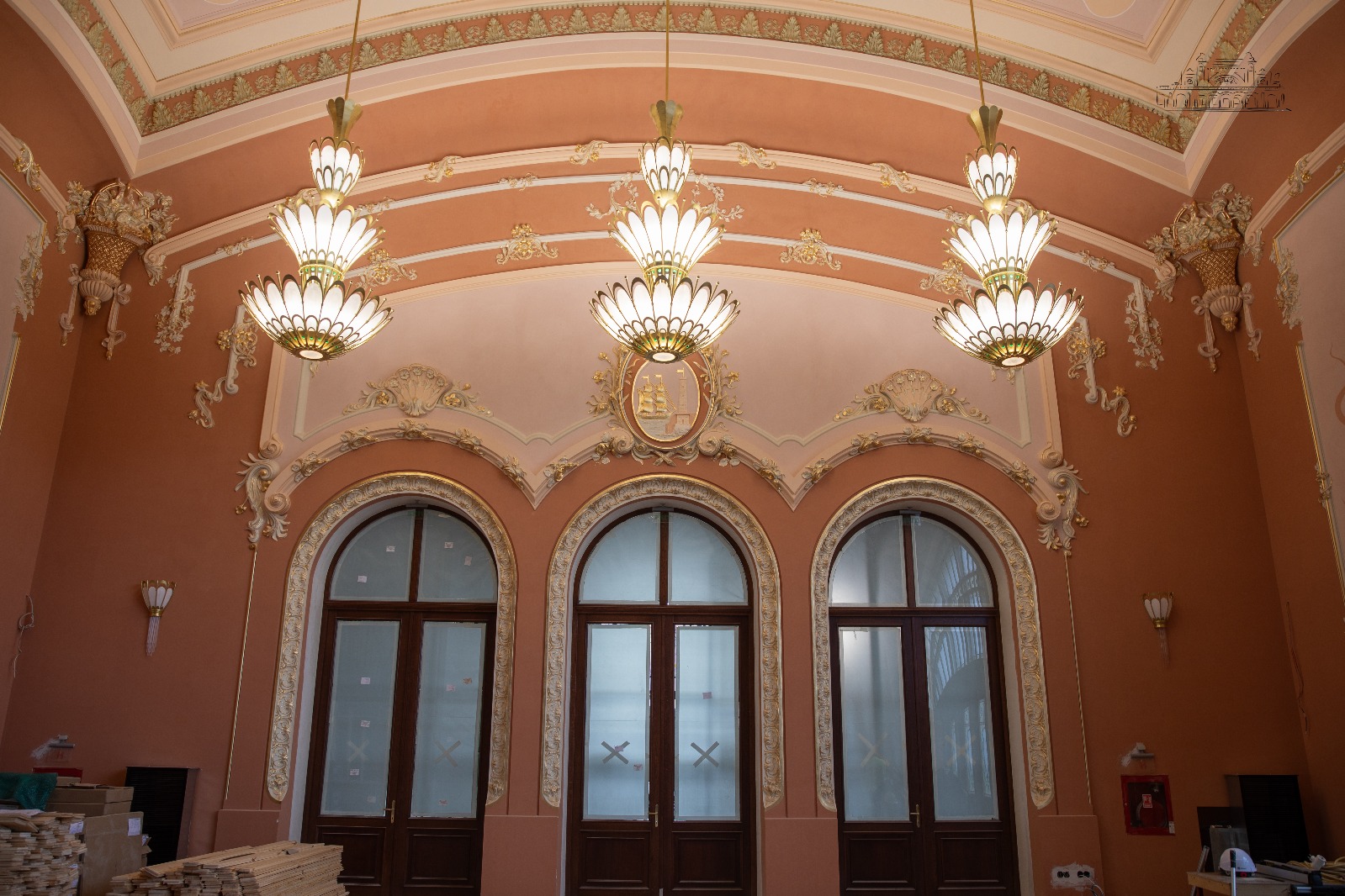 Proiectul de restaurare s-a concentrat pe redarea strălucirii originale a clădirii, prin recuperarea minuțioasă a elementelor care au definit-o la începutul secolului XX. Fațada impunătoare, sculpturile delicate și sala de bal au fost revitalizate folosind tehnici și materiale apropiate de cele din epocă. Procesul de restaurare, ghidat de documente arhiviste și fotografii vechi, a adus în prim-plan arta meșteșugarilor de altădată. Un accent deosebit a fost pus pe păstrarea spiritului locului: stucaturile aurii, vitraliile colorate și parchetul de stejar au fost consolidate și readuse la viață fără a le altera patina timpului. Fiecare detaliu ascunde o poveste, iar reabilitarea este, în esență, o călătorie în trecutul glorios al orașului.