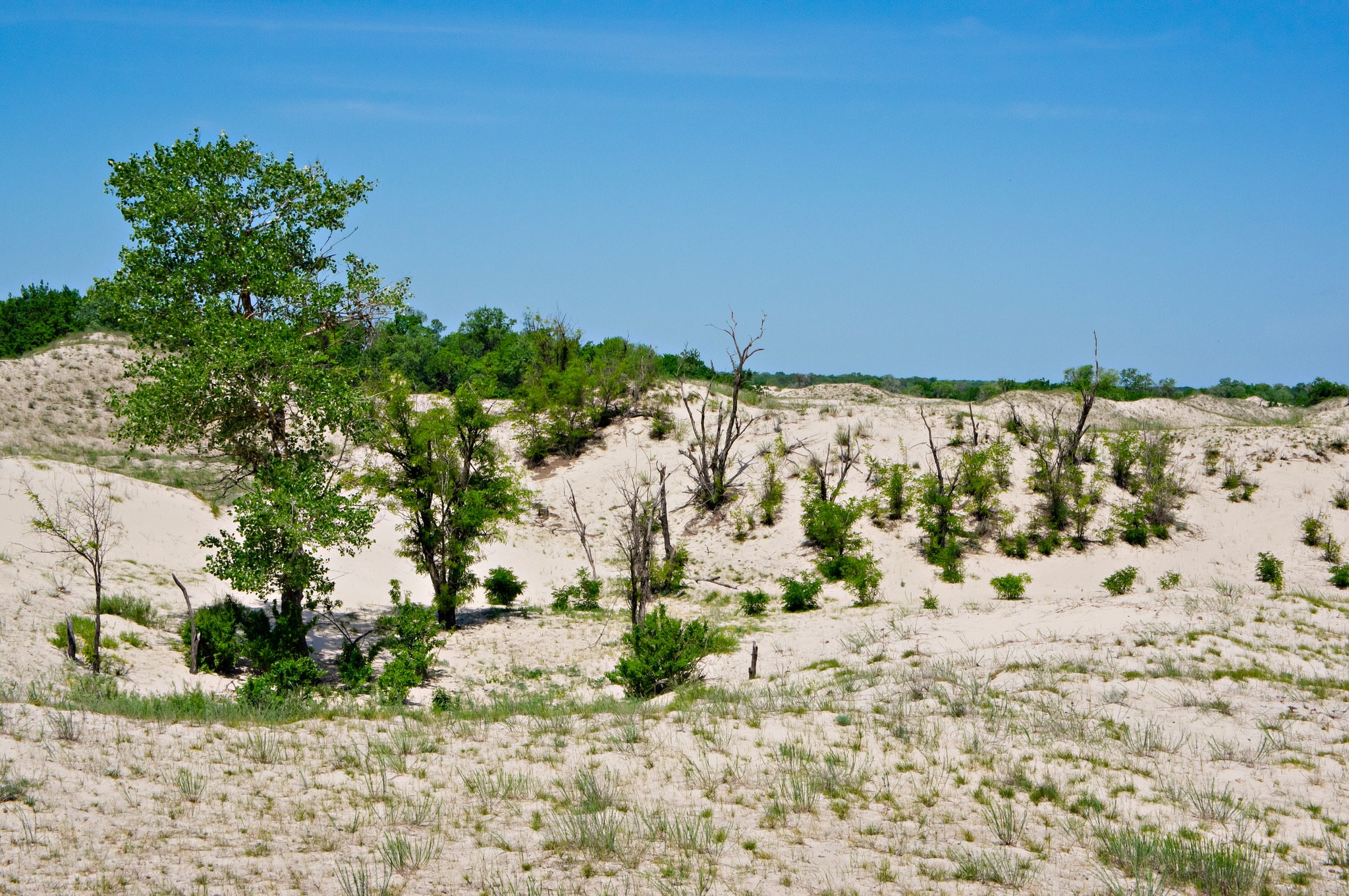 În aceste păduri cu aspect subtropical, dezvoltate în zonele joase și mai umede dintre grindurile de nisip numite “hasmace”, se întâlnesc specii de stejar (Quercus robur, Quercus pedunculiflora) împreună cu specii de frasin (Fraxinus angustifolia, Fraxinus pallisiae), cu specii variate de arbuşti sau de plante căţărătoare cum sunt: viţa sălbatică (Vitis silvestris) sau liana (Periploca graeca).