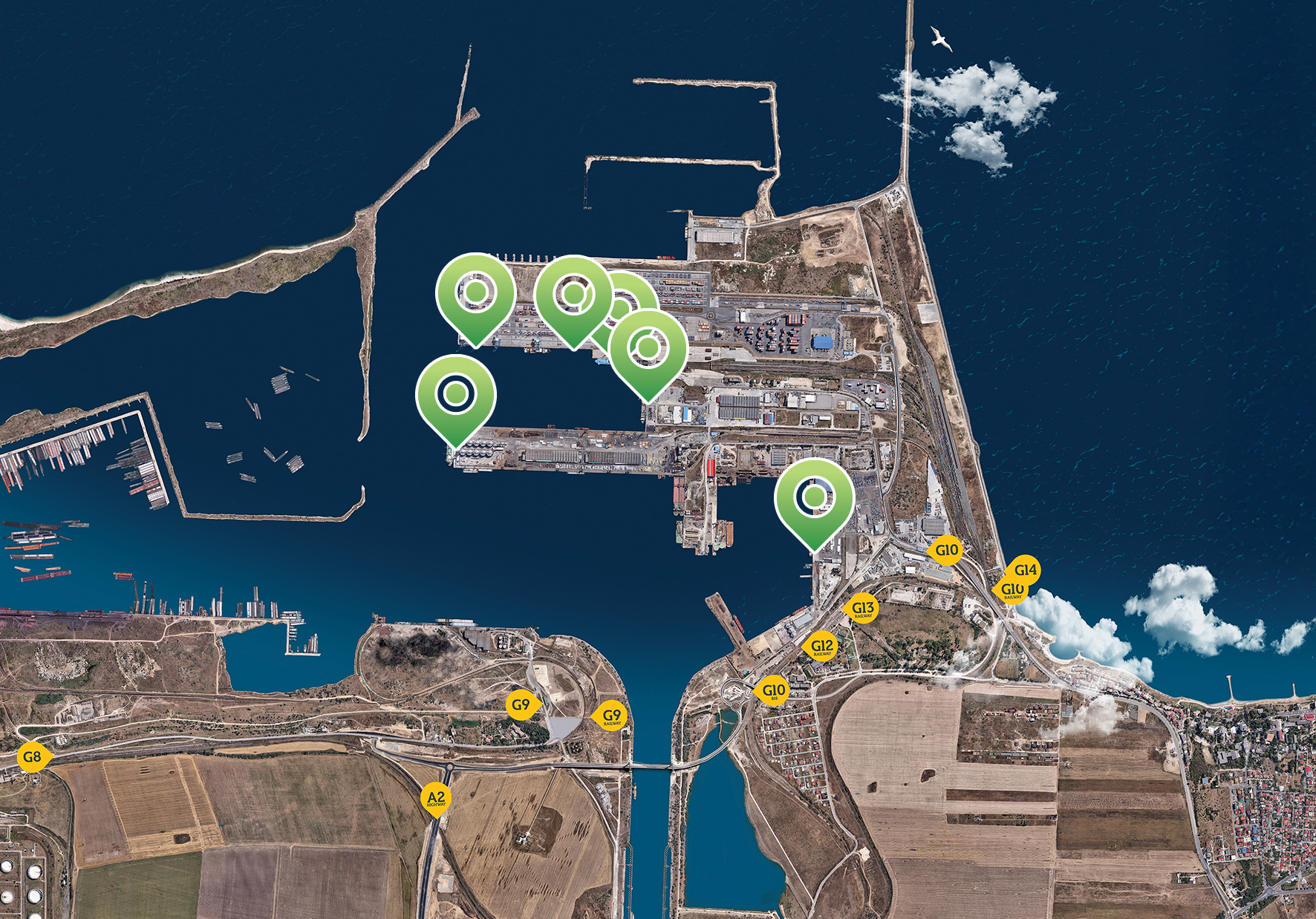 – Reducerea nivelului de zgomot, reducerea emisiilor dăunătoare, precum și reducerea emisiilor de dioxid de carbon în zona portuară, dar și în zona comercială aflată în imediata apropiere a portului;