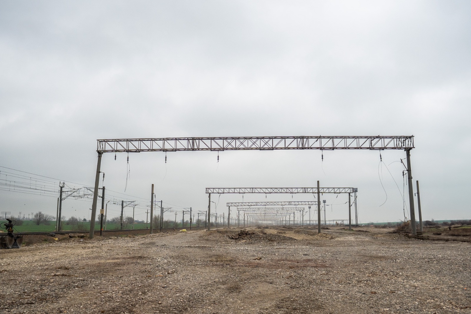 În prima fază, constructorul a eliberat zona de traversele de beton depozitate și a executat lucrări de defrișare și tocare a resturilor vegetale. Ulterior, a fost demontată întreaga Grupă de așteptare – șinele, grinzile rigide și stâlpii de la liniile 1-7.