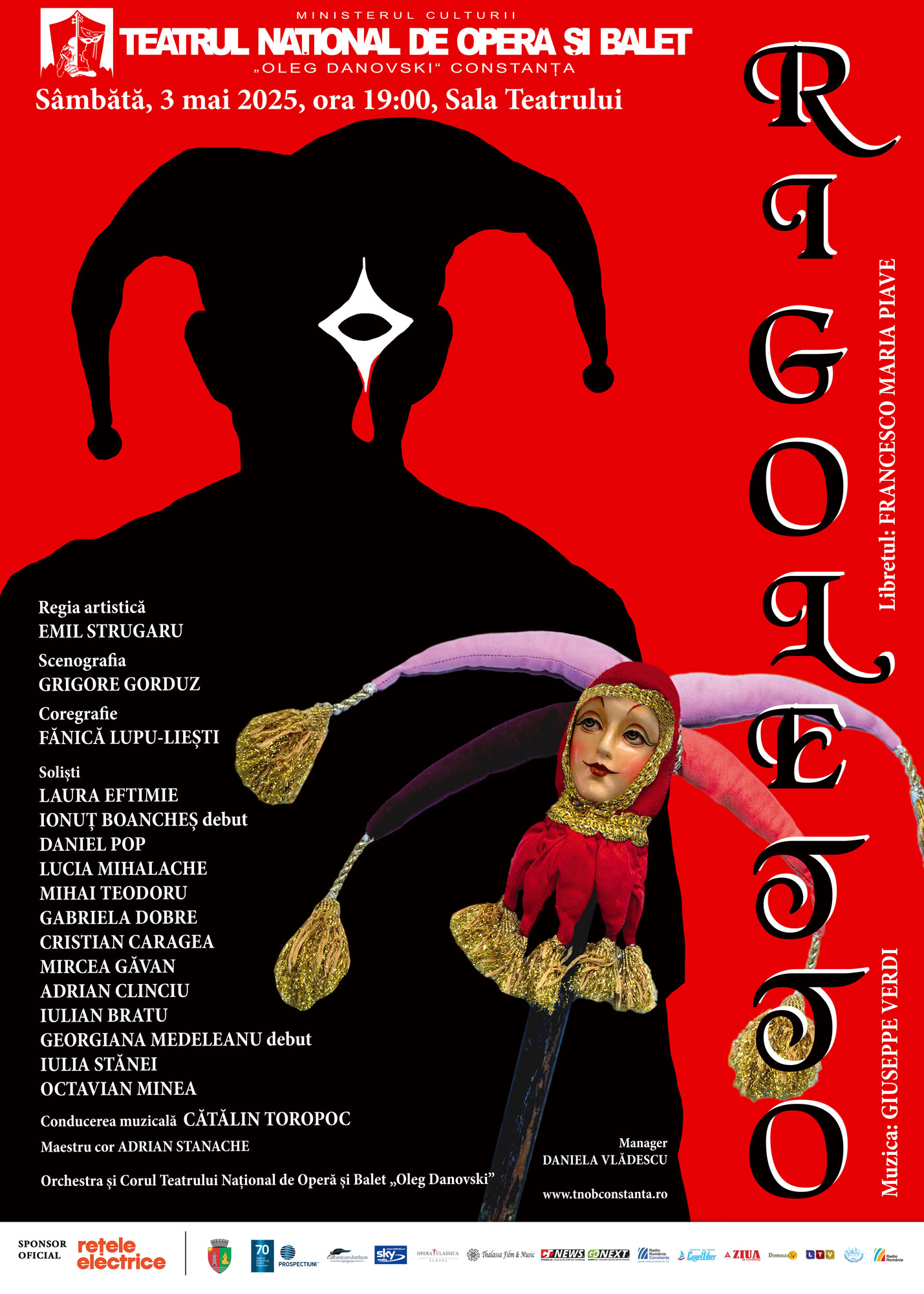 Teatrul Național de Operă și Balet „Oleg Danovski” are plăcerea de a vă invita sâmbătă, 3 mai 2025, de la ora 19:00, la spectacolul de operă „Rigoletto” de Giuseppe Verdi, una dintre cele mai tulburătoare creații lirice ale repertoriului romantic italian.