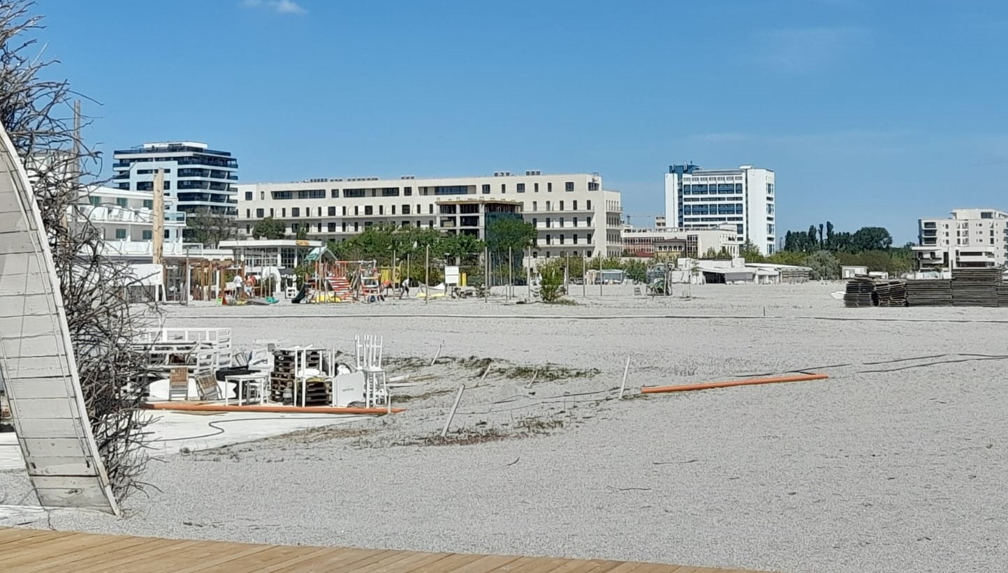Pe plajă, beach barurile lipsesc, iar șezlongurile sunt prezente doar în anumite zone. Grămezi de paleți așteaptă să fie montate în fața fiecărui local, pregătindu-se să faciliteze accesul turiștilor către mal. Totuși, proprietarii hotelurilor deja deschise au oferte diverse pentru vizitatori.