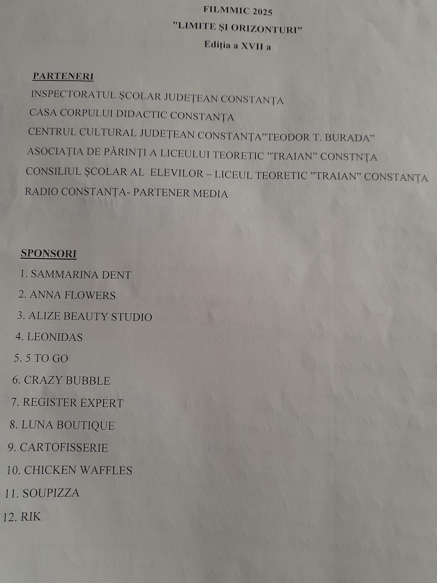 Creativitatea adolescenților a fost dovedită și la această ediție ce a avut tema: „Limite și orizonturi”. Festivalul „FILMMIC” face parte din Calendarul evenimentelor naționale și internaționale din cadrul Ministerului Educației și Cercetării, a fost inițiat de Liceul Traian din Constanța și de 17 ani, reunește elevi de liceu capabili să coopereze, să își exprime spiritul liber, să creeze și să muncească în echipă.