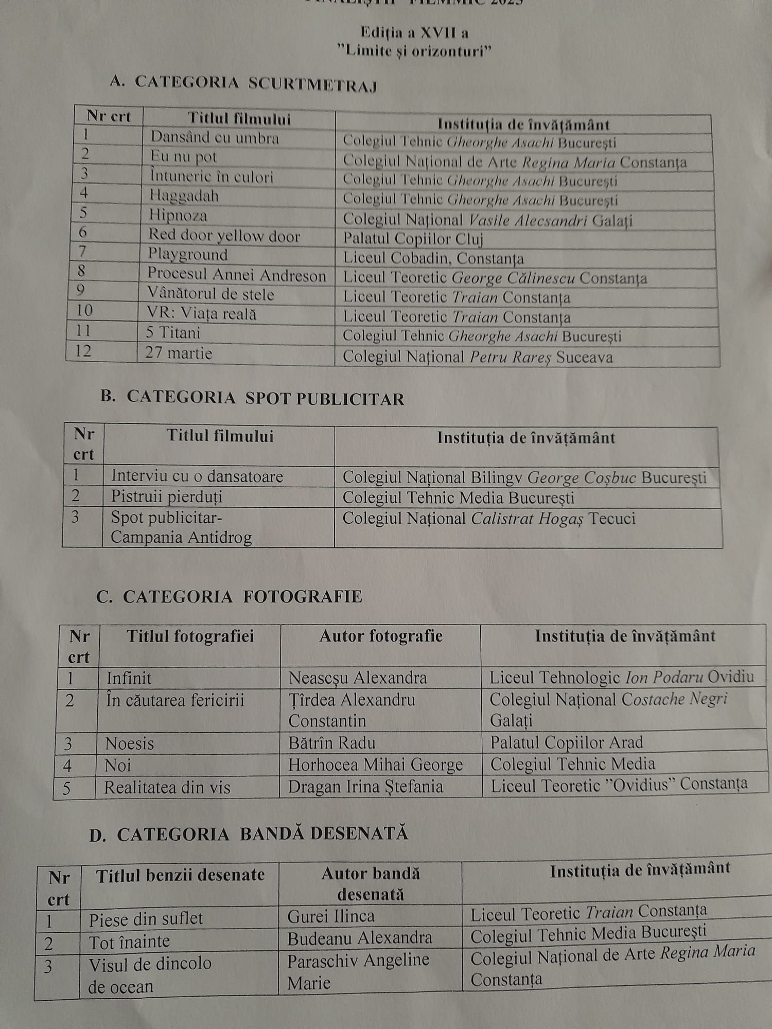 Directorul Liceului Traian: „Se apropie majoratul ediției, mulțumiri elevilor și părinților care susțin acest demers. Ce anume vedeți voi, la orizont și dincolo de le? Răspunsul este în proiecțiile care urmează. Felicitări tuturor care ați trimis lucrări, indiferent dacă sunteți câștigători sau nu.”
