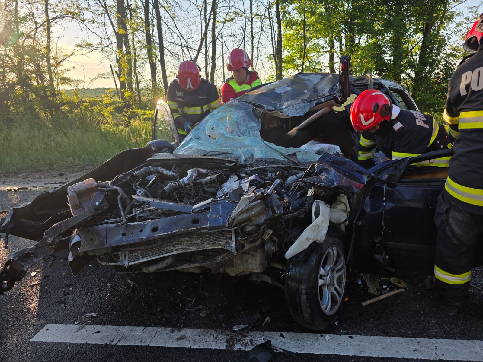 În urma impactului, au fost rănite 2 persoane, dintre care o victimă a rămas încarcerată, fiind extrasă în stare de inconștiență, în stop cardiorespirator.