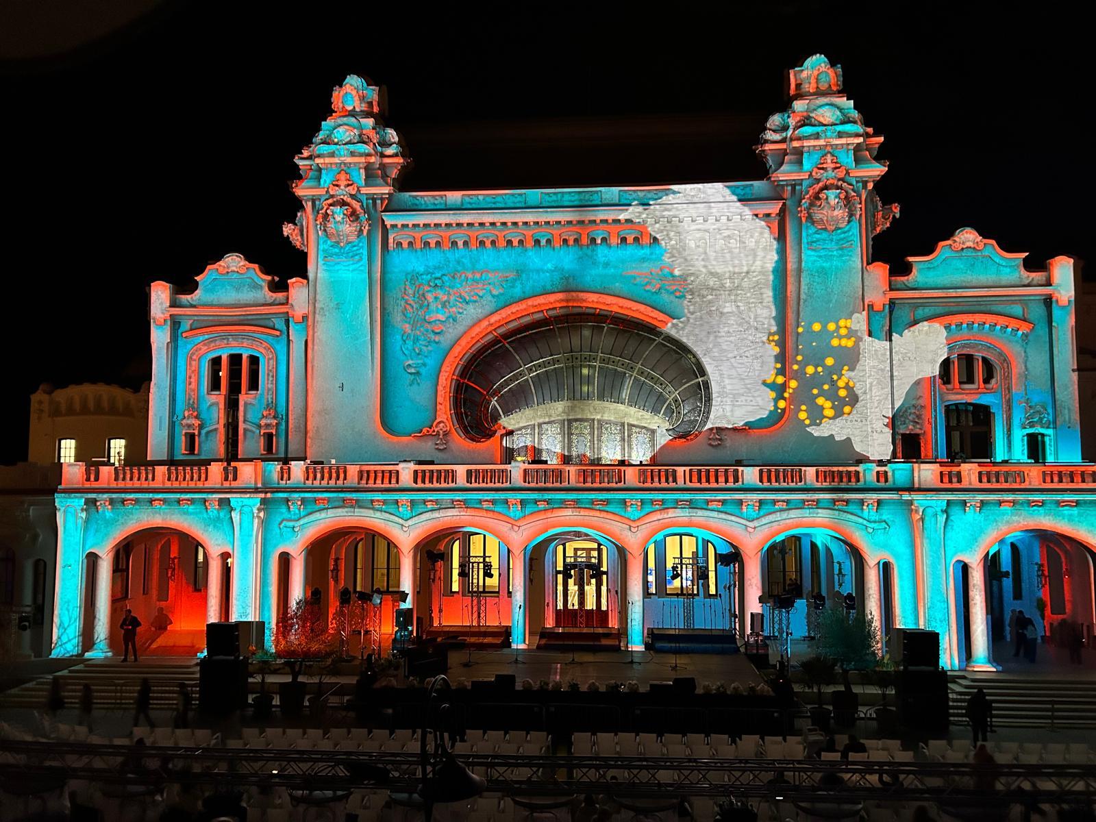 La lăsarea serii, clădirea Cazinoului și-a spus singură povestea tumultoasă printr-o proiecție de video mapping spectaculoasă realizată în parteneriat cu One Night Gallery, Les Ateliers Nomad și MINA Museum.