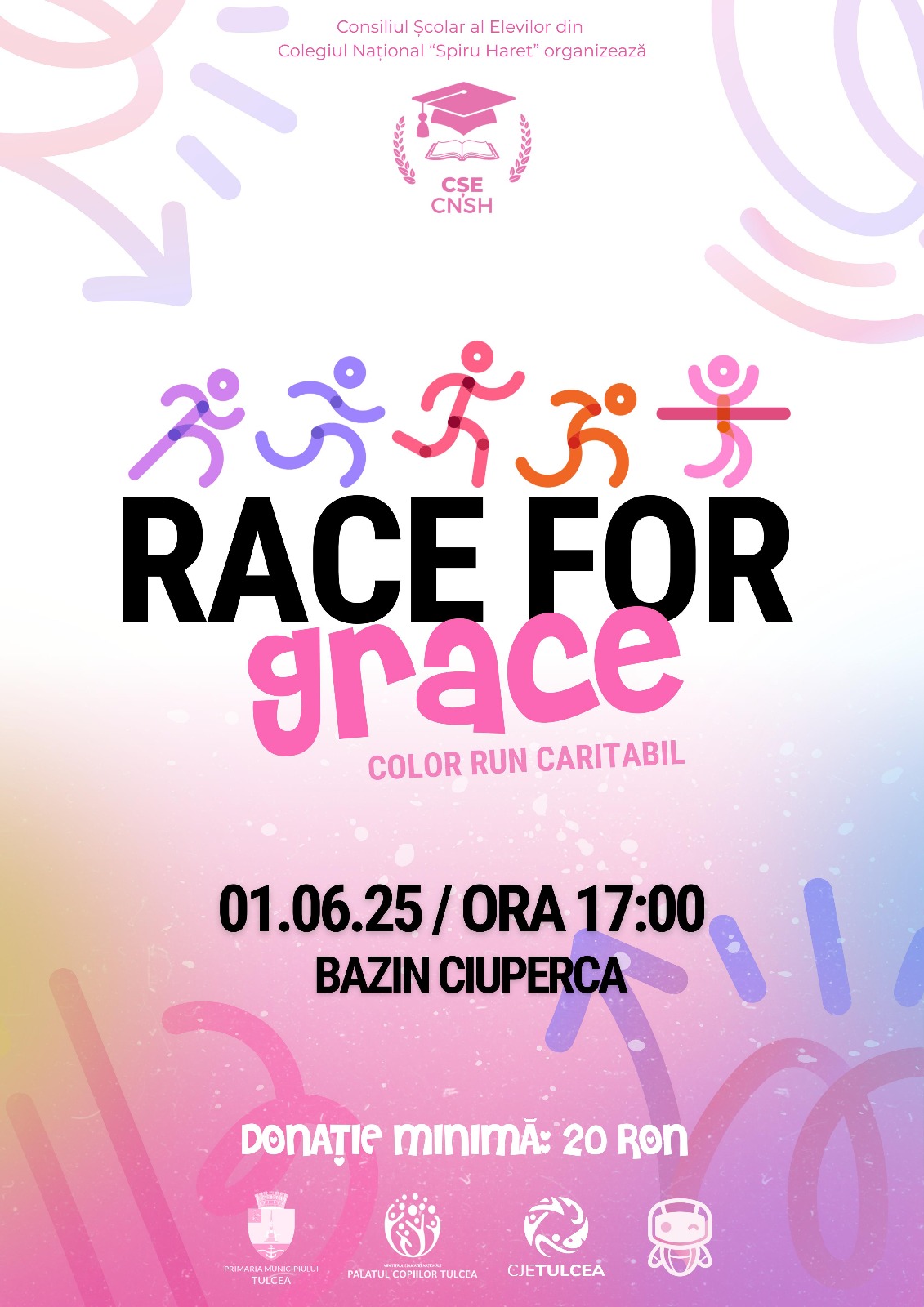 Consiliul Școlar al Elevilor din Colegiul Național „Spiru Haret” Tulcea, structura de reprezentare a elevilor din unitate, organizează evenimentul caritabil „Race for Grace”, ce va avea loc duminică, 1 iunie 2025, în intervalul 17:00 – 21:00, pe promenada Lacului Ciuperca, Tulcea.