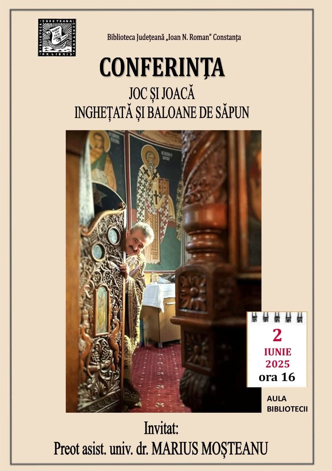 CONSTANȚA: Părintele Marius Moșteanu susține o nouă conferință la Biblioteca Județeană „Ioan N. Roman”
