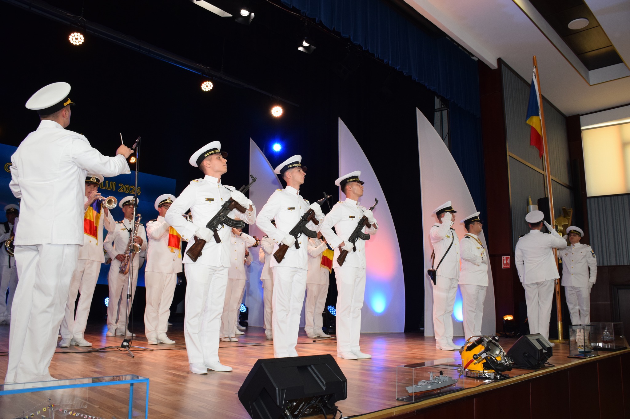 În cadrul festivității, viceamiralul Mihai Panait a înmânat premii de excelență comandorului Silviu-Laurențiu Bucur, comandantul Centrului 338 Mentenanță Tehnică Navală, pentru devotamentul și implicarea constantă în realizarea mentenanței navelor și a echipamentelor din Forțele Navale, caporalului clasa a III-a Alexandra-Laura Popa, sanitar la Cabinetul de Medicină Hiperbară din cadrul Centrului 39 Scafandri și prima femeie scafandru de mare adâncime cu alimentare la suprafață din România, precum și colonelului în rezervă dr. Cornel Ignat, cel care a condus Muzica Militară a Forțelor Navale timp de peste două decenii și jumătate.