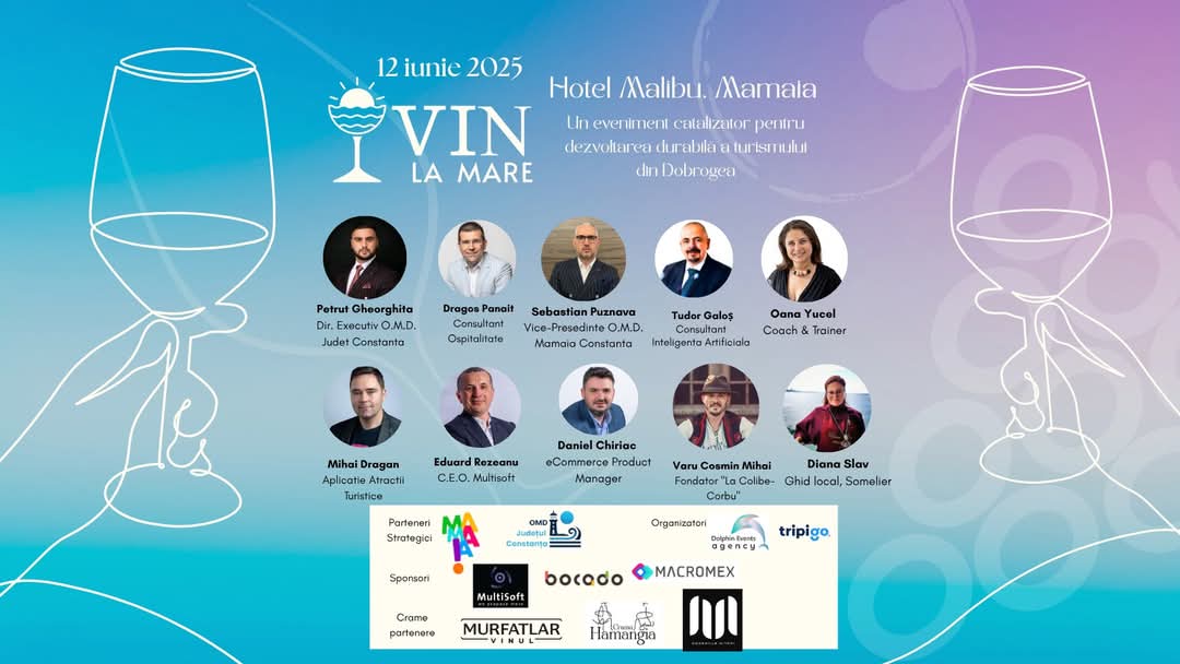 „VIN la mare” aduce laolaltă manageri și proprietari din HORECA, crame renumite din Dobrogea, consultanți, bloggeri și lideri din industria turismului, într-un spațiu de networking, învățare și colaborare. Participanții vor explora teme relevante precum: digitalizarea afacerilor HORECA, extinderea sezonului estival prin turismul de experiență, leadership, sustenabilitate și integrarea vinului în identitatea turistică regională.