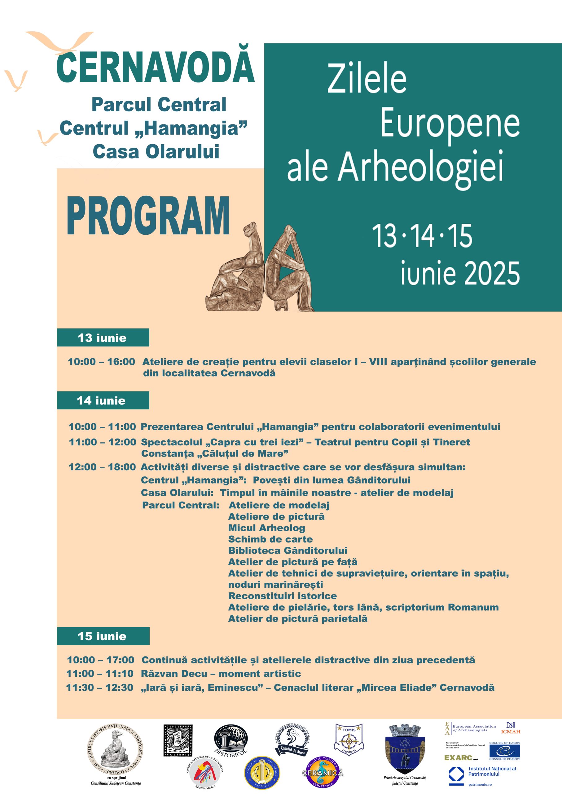Muzeul de Istorie Națională și Arheologie Constanța, în parteneriat cu Primăria orașului Cernavodă, organizează, în perioada 13-15 iunie 2025, o serie de evenimente dedicate copiilor și tinerilor, acțiuni desfășurate cu ocazia sărbătoririi „Zilelor Europene ale Arheologiei”.