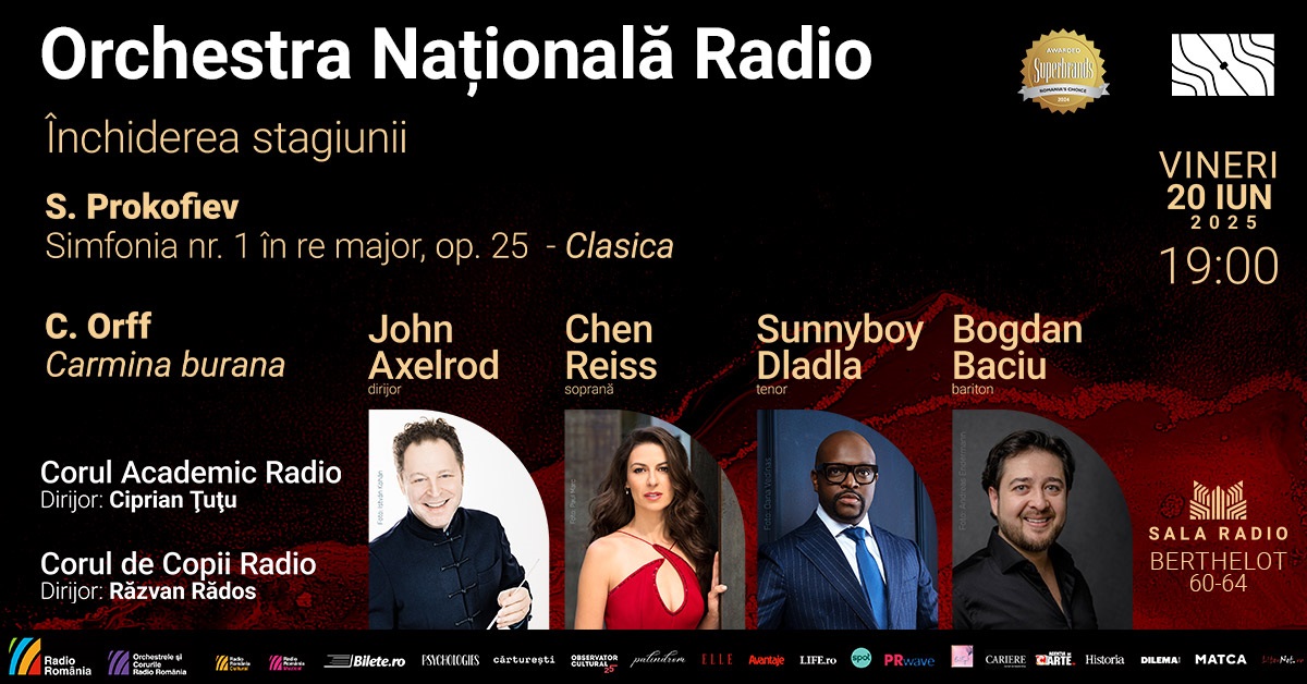 Peste 140 de muzicieni vor urca pe scena Sălii Radio în evenimentul de închidere a stagiunii. Trei dintre ansamblurile Radio România (Orchestra Națională Radio, Corul Academic Radio – pregătit de Ciprian Țuțu și Corul de Copii Radio – dirijat de Răzvan Rădos) vor evolua sub bagheta dirijorului americano-elvețian John Axelrod, care, în 2023, a fost ales director muzical și dirijor principal al Orchestrei Naționale Elvețiene (Swiss National Orchestra) și care își continuă colaborarea, ca dirijor principal, cu Orchestra Simfonică București.