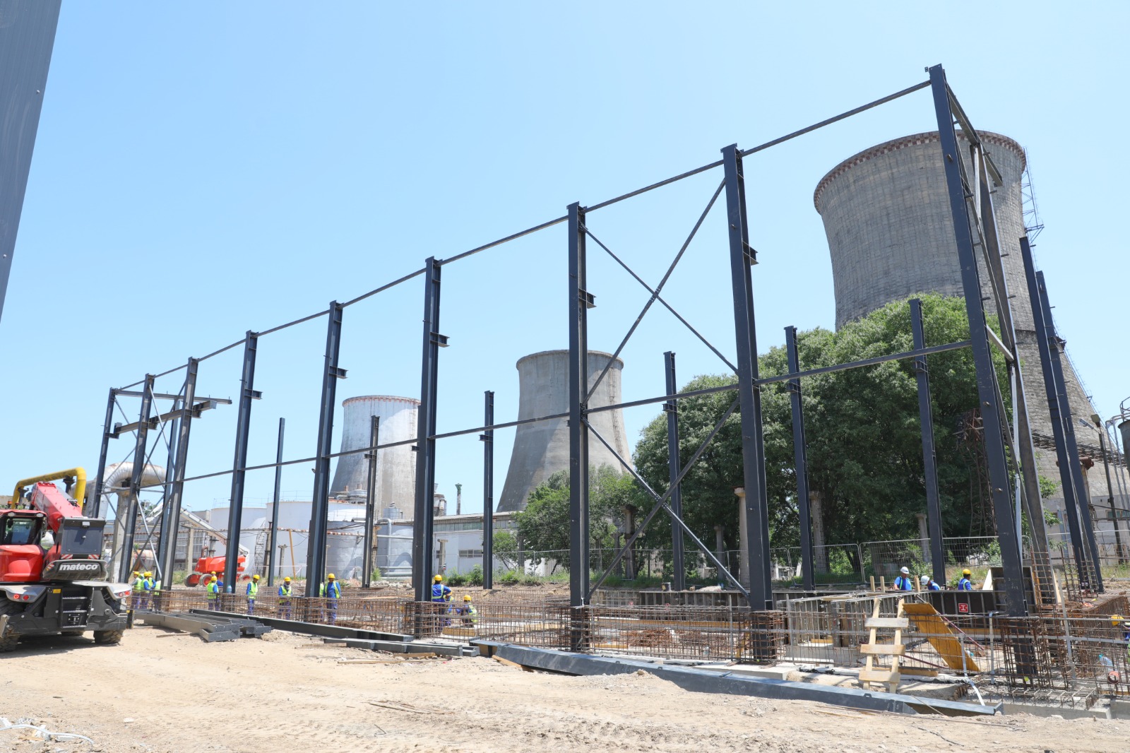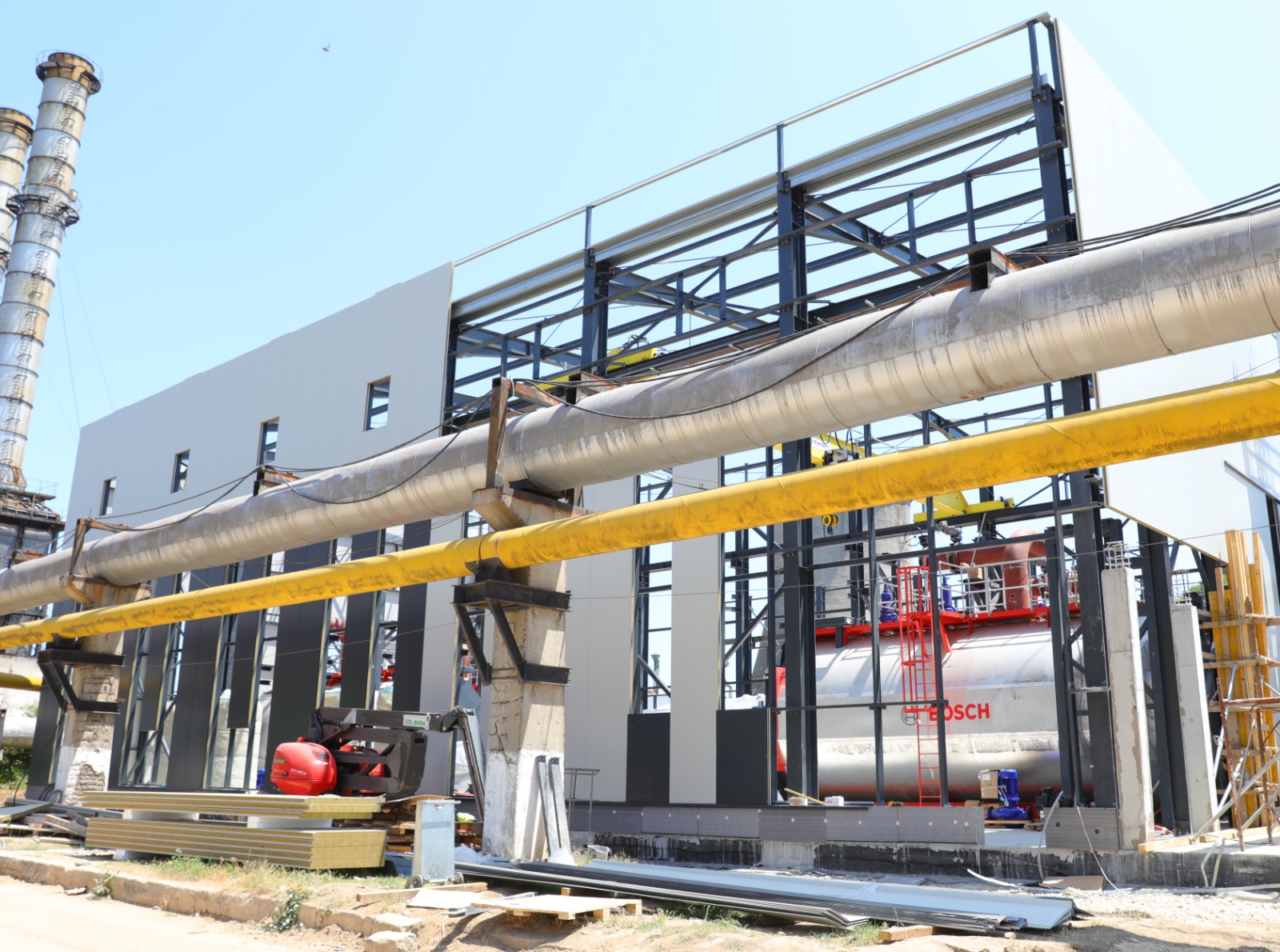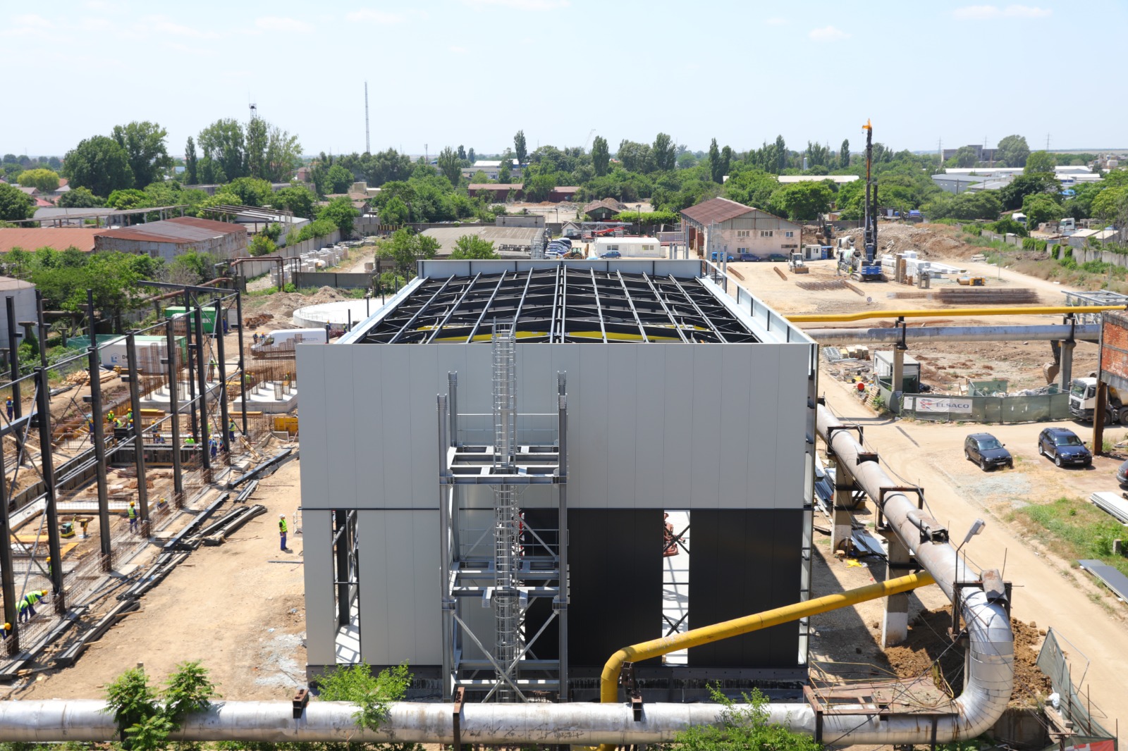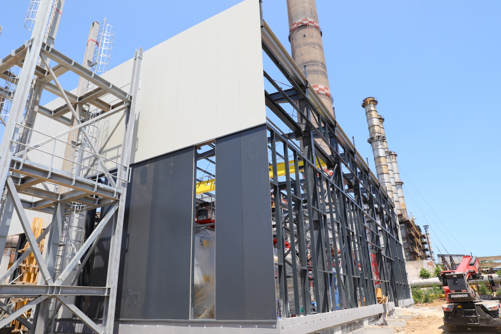 • A fost finalizat montajul structurii metalice a clădirii cazanelor pe gaz, iar în prezent se montează panourile de fațadă;