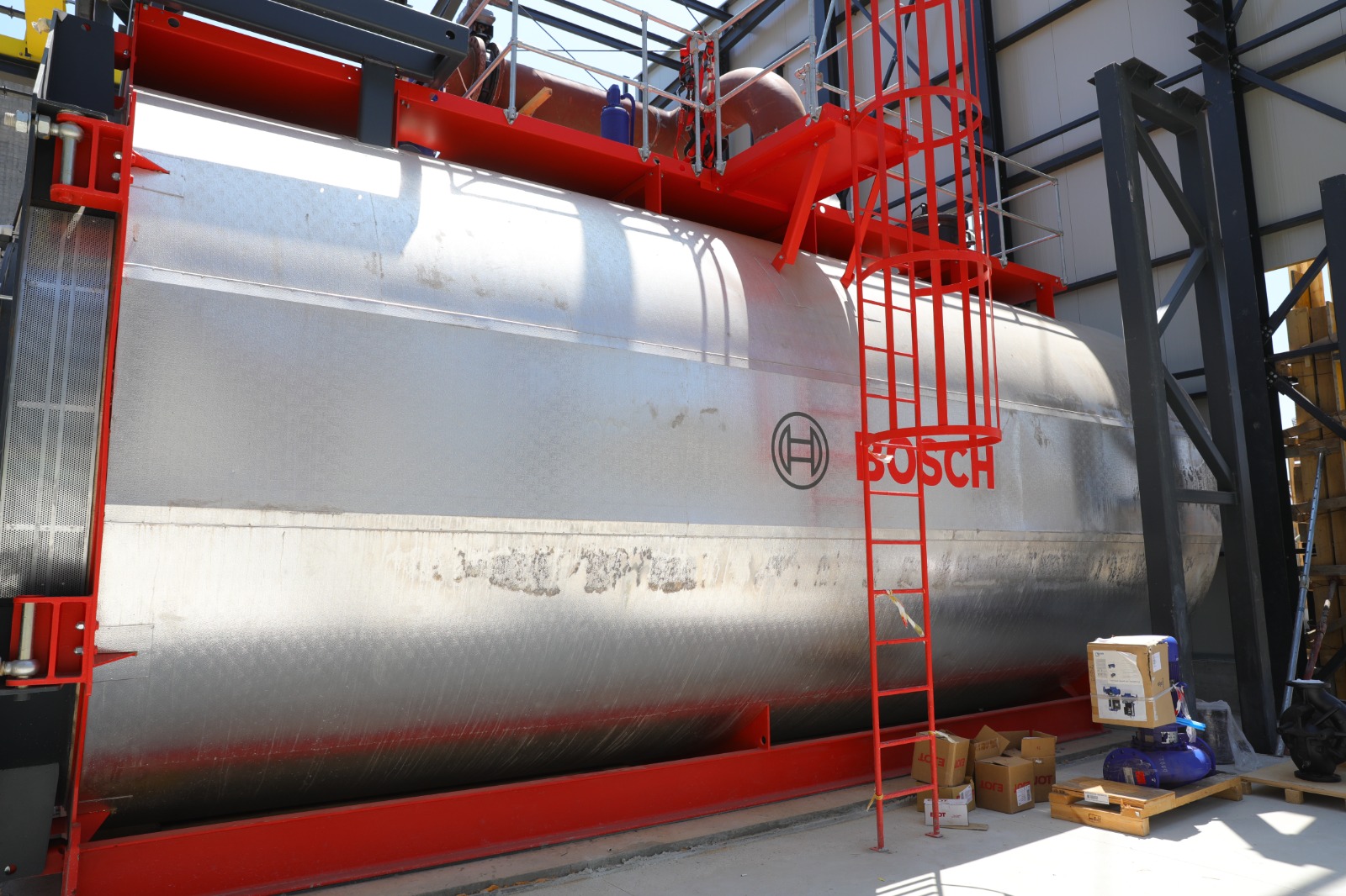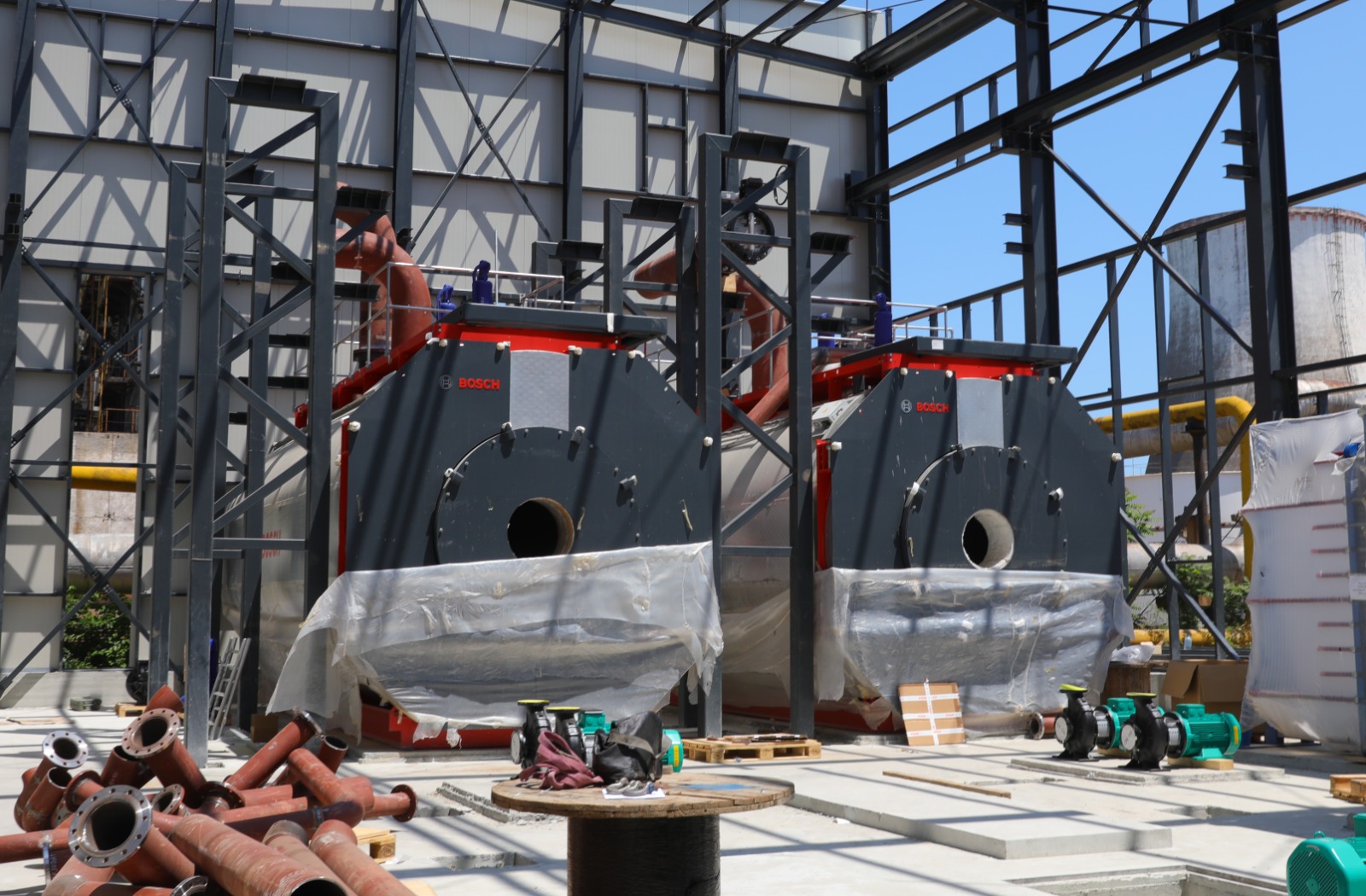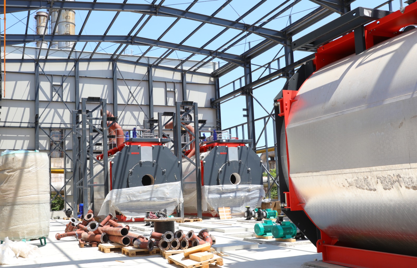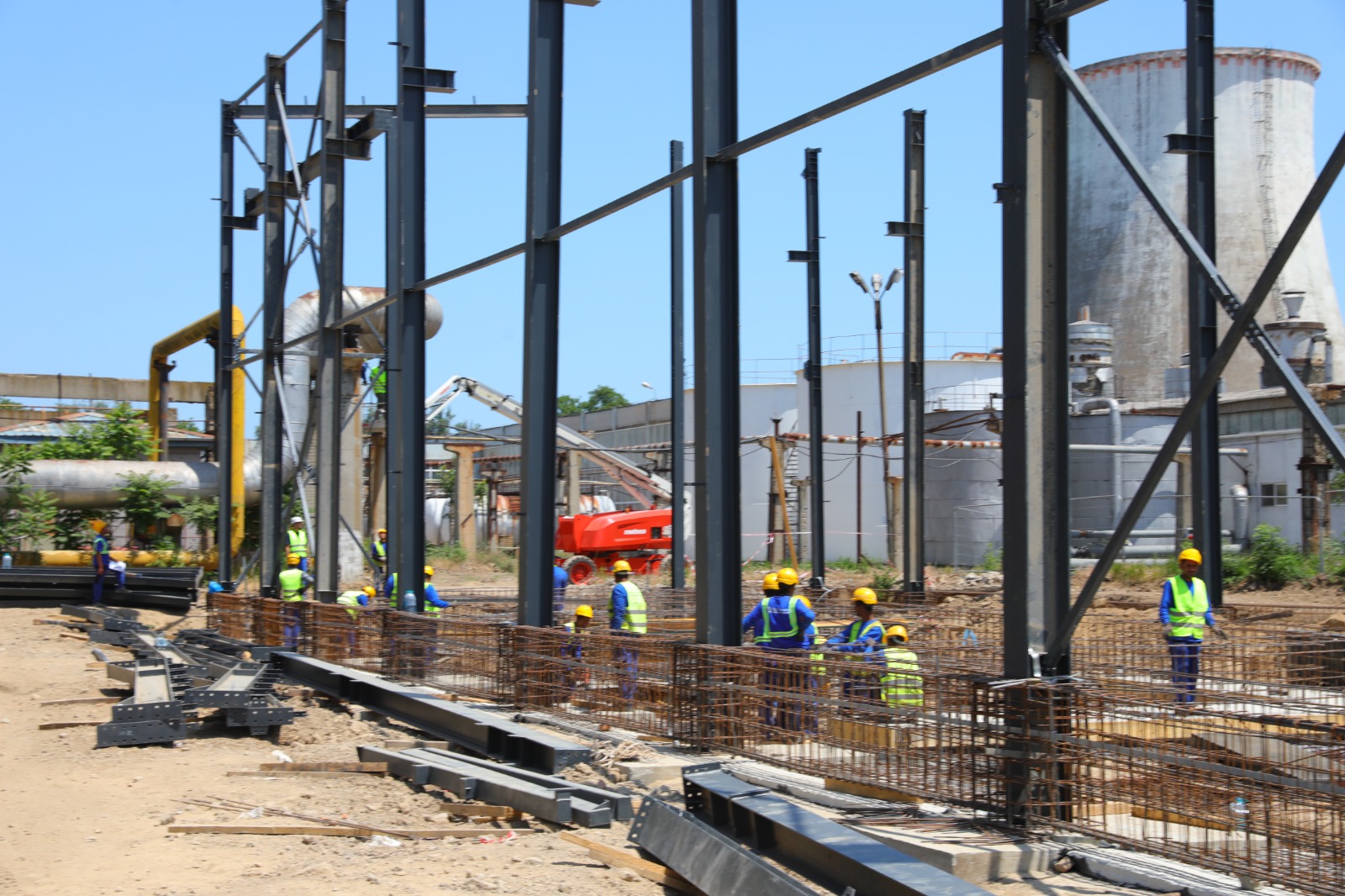 • A fost finalizat montajul structurii metalice a clădirii cazanelor pe gaz, iar în prezent se montează panourile de fațadă;