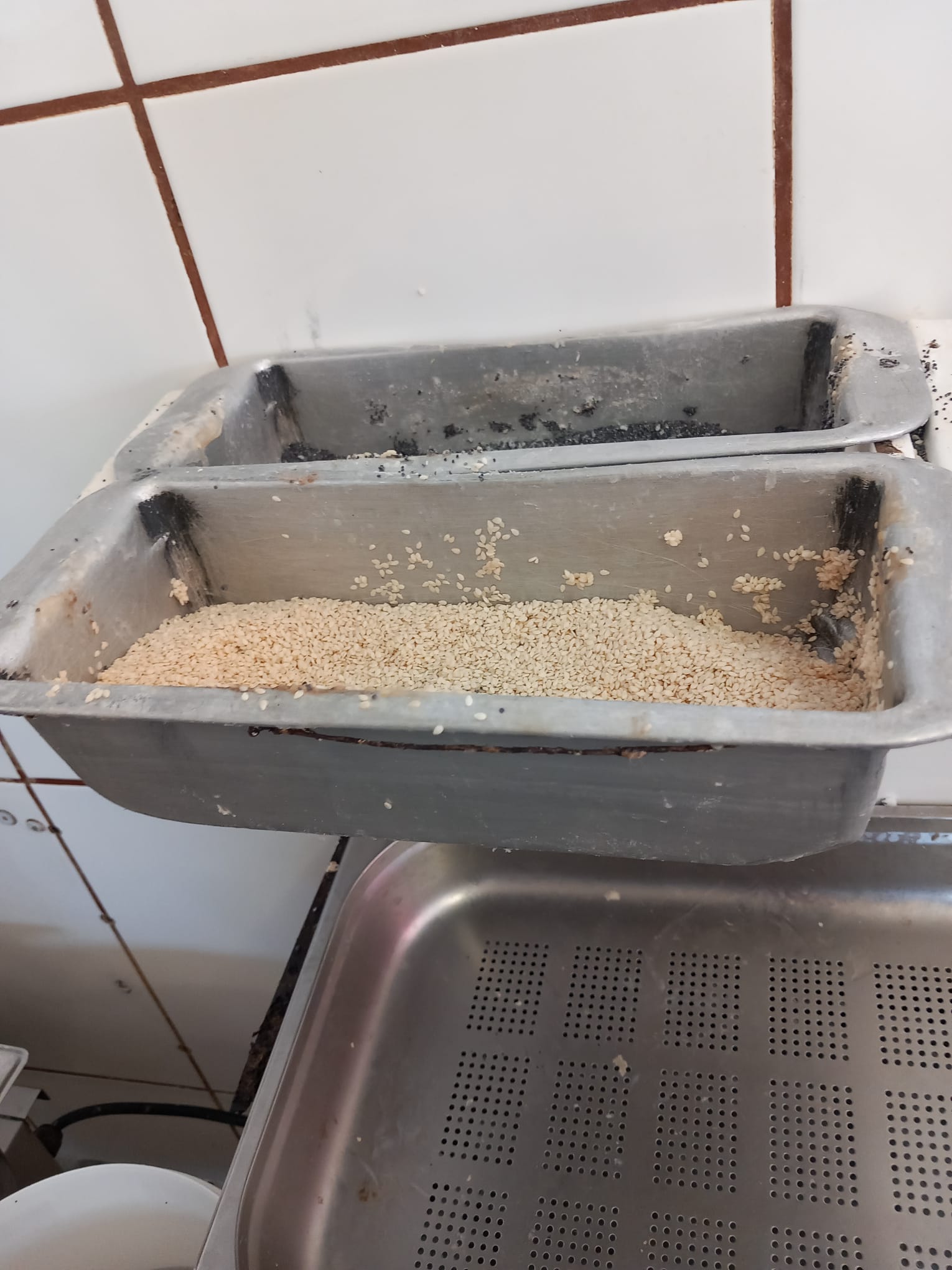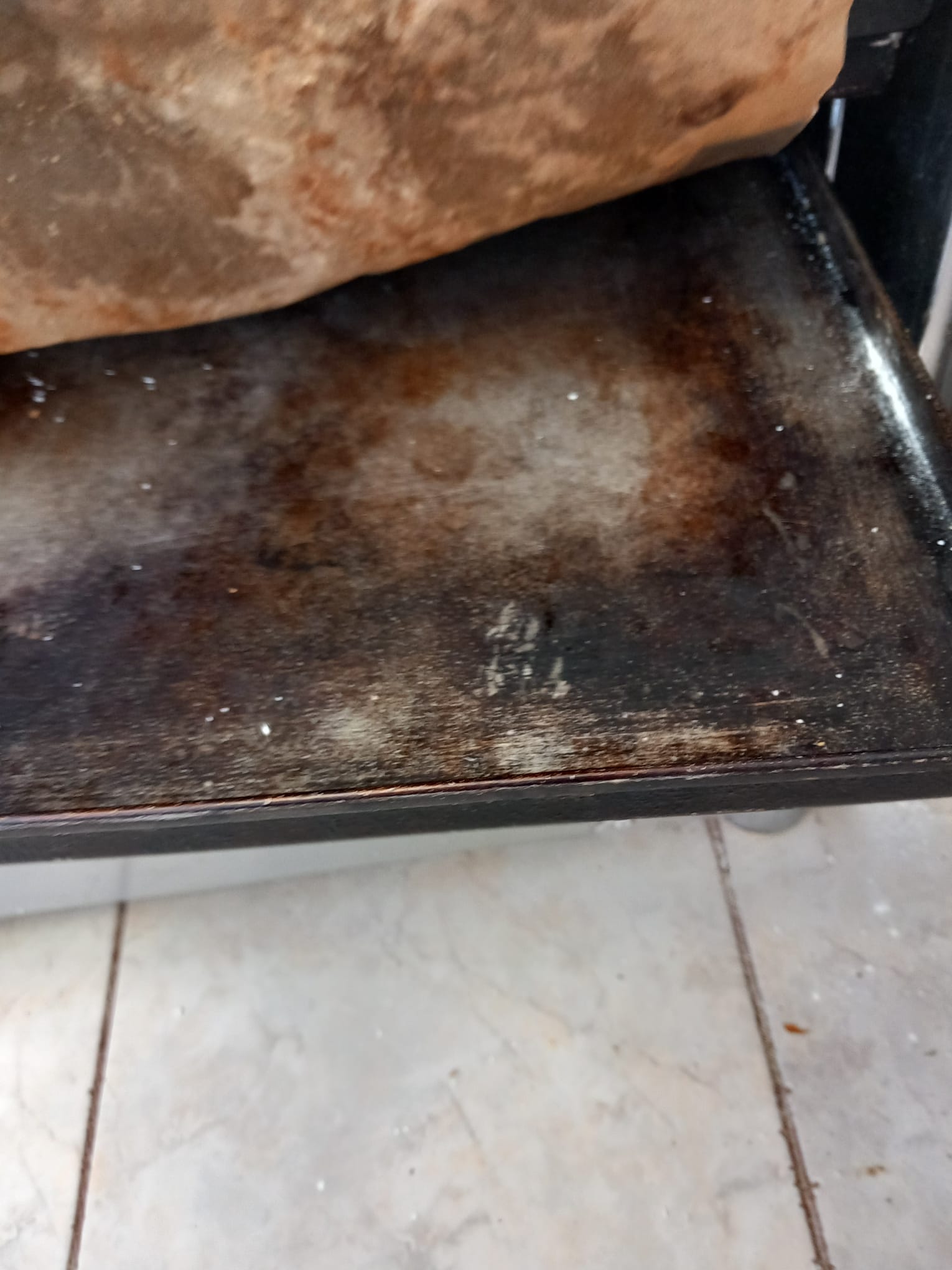 Tăvile de coacere sunt neigienizate, prezentând un grad accentuat de arsură, bancul de lucru este prevăzut cu o suprafață din lemn vopsit, iar vopseaua este exfoliată.