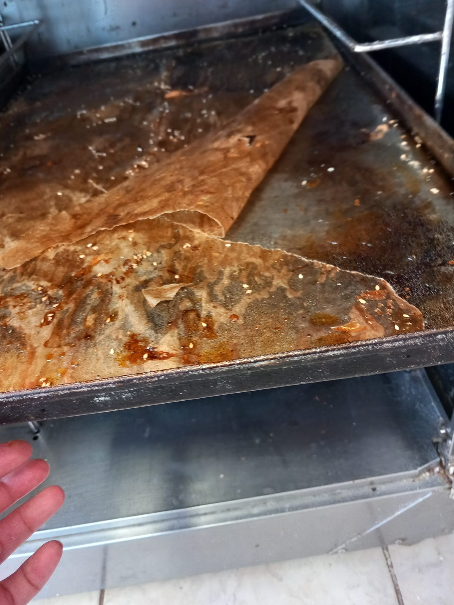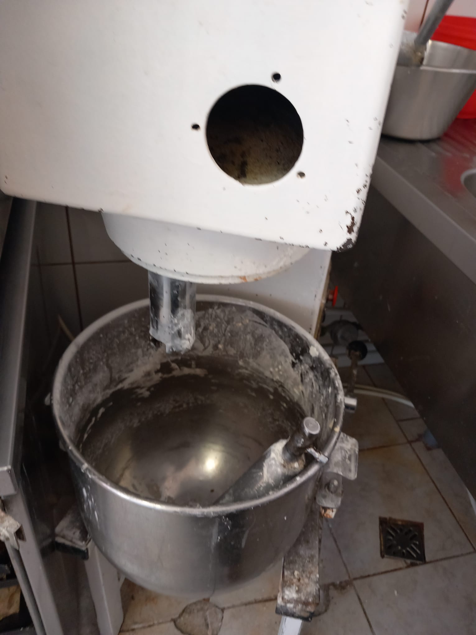 Cuptorul utilizat pentru coacere prezintă un grad ridicat de neigienizare, ventilatorul acestuia având depuneri vizibile de arsură și grăsime, iar hota destinată evacuării aerului prezintă acumulări masive de grăsime și arsură, semn al lipsei întreținerii și igienizării periodice.