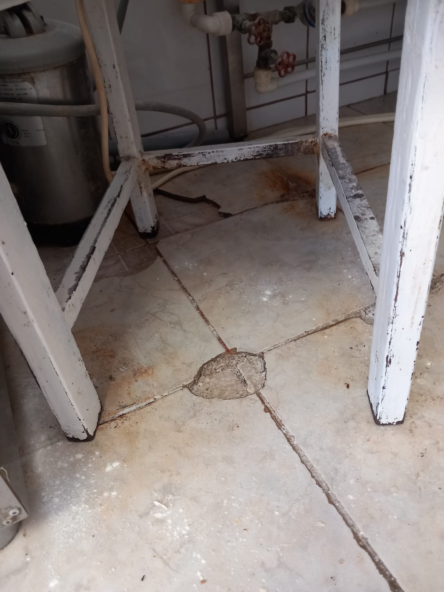 Canalul de scurgere din paviment este neigienizat, iar pavimentul prezintă fisuri și este neigienizat, creând condiții improprii de lucru.