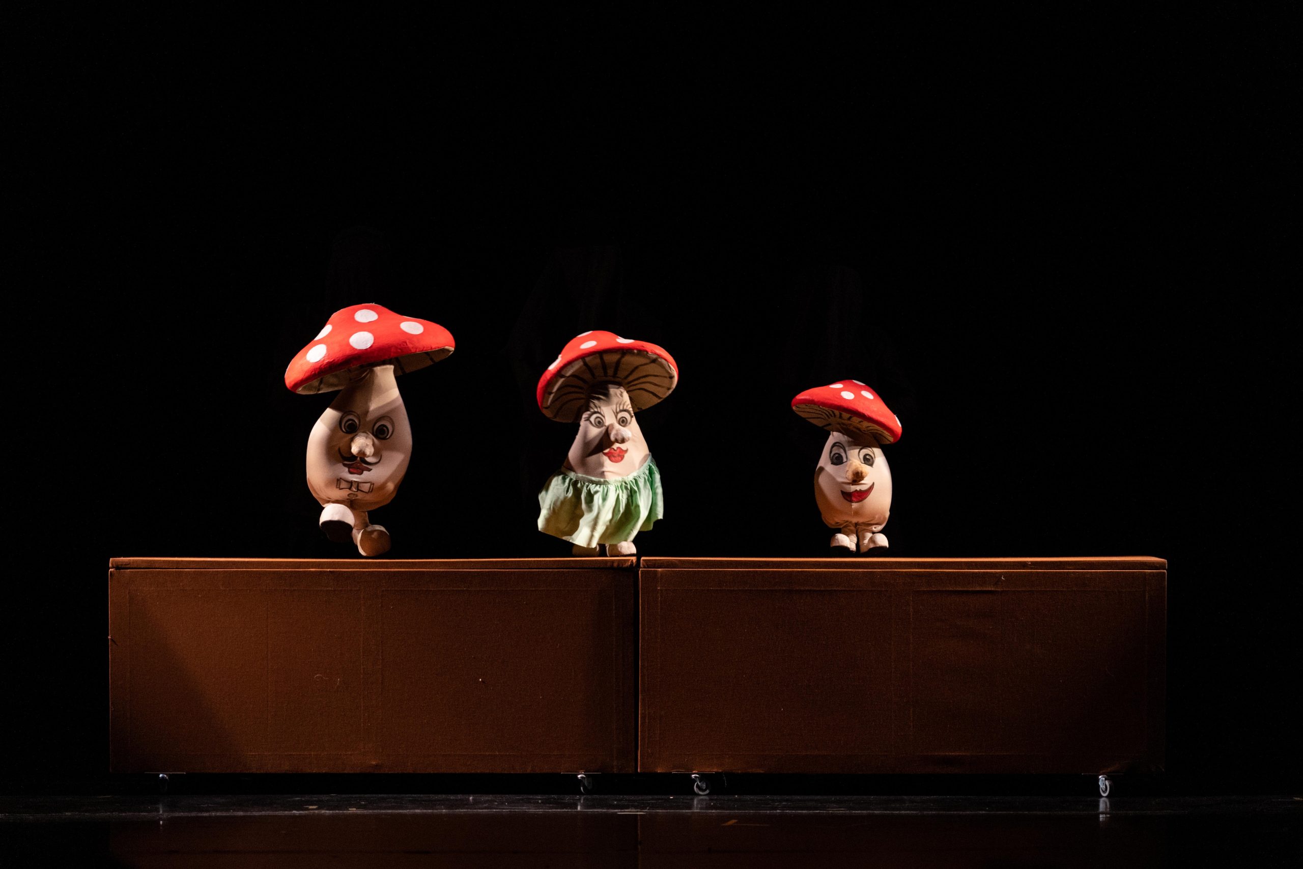 În spectacolul plin de candoare și umor, micuții vor face cunoștință cu o Scufiță Roșie puțin mai atipică, care alături de lupul cel mic, lupul „cel bătrân” prea obosit să mai ducă povestea la bun sfârșit, ciupercuțele care cântă, iepurași vorbitori și copaci care freamătă le vor oferi multe momente amuzante, totul într-un decor minimalist, pe niște acorduri muzicale antrenante.
