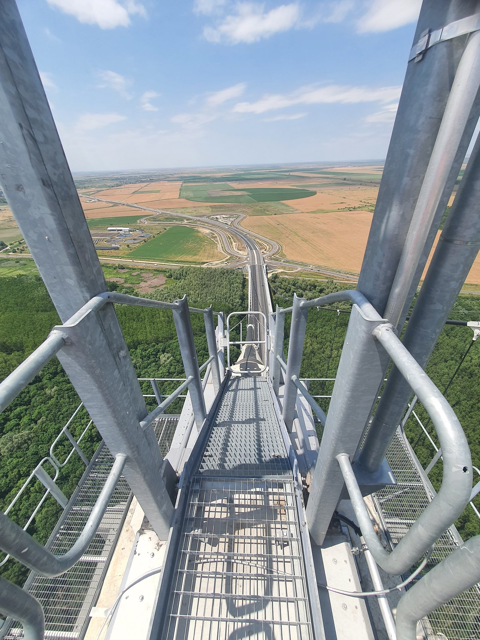 Deasupra Dunării se află podul suspendat, cu o lungime de 1,9 kilometri.
