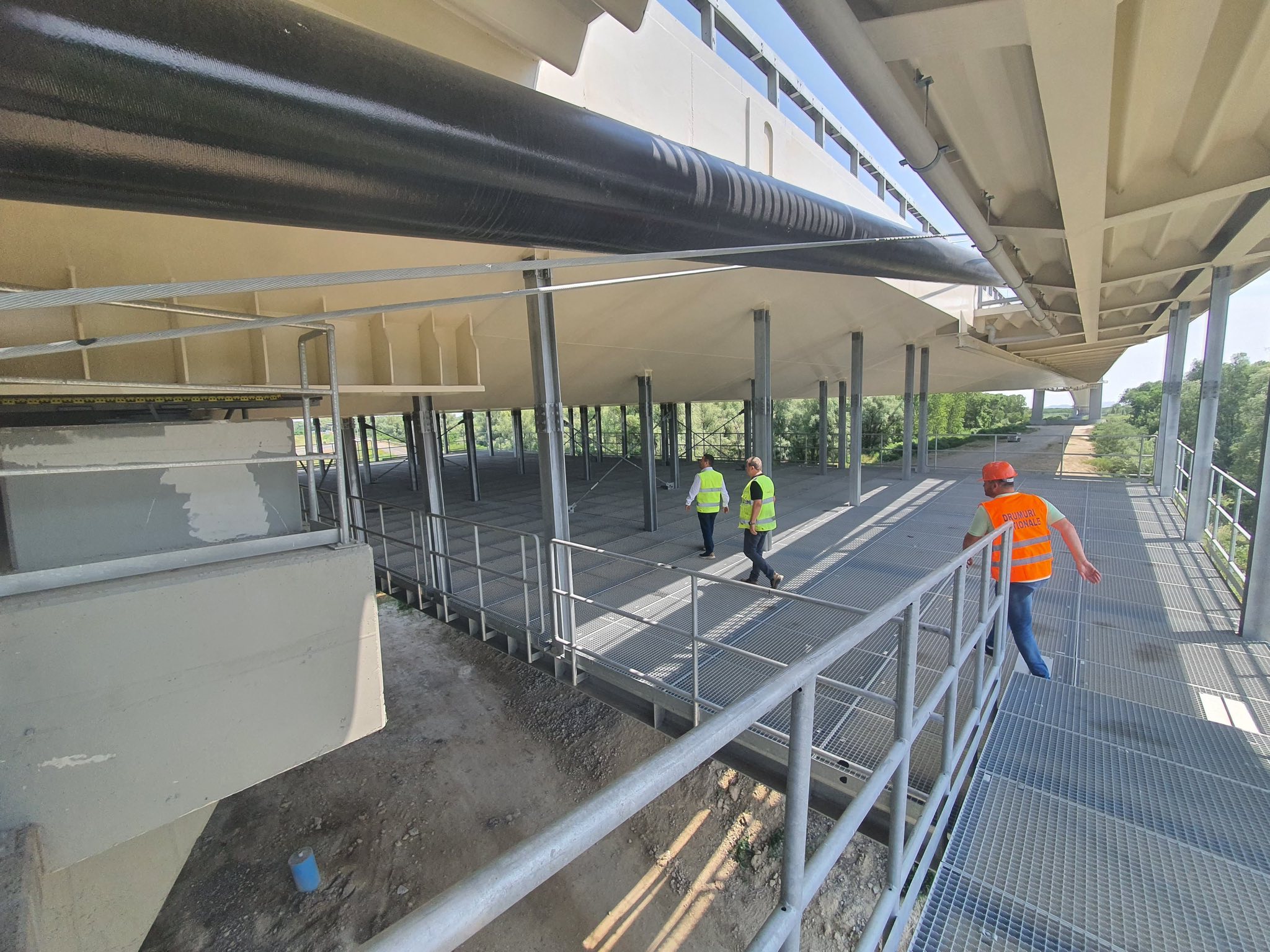 La acest pod a fost montat și funcționează un sistem de dezumidificare a tuturor ansamblurilor — inclusiv a tablierului metalic și a cablurilor. Cablurile sunt izolate la exterior cu un strat protector care asigură etanșeitatea, iar aerul din interior este permanent dezumidificat și monitorizat pentru a menține un mediu anticoroziv.