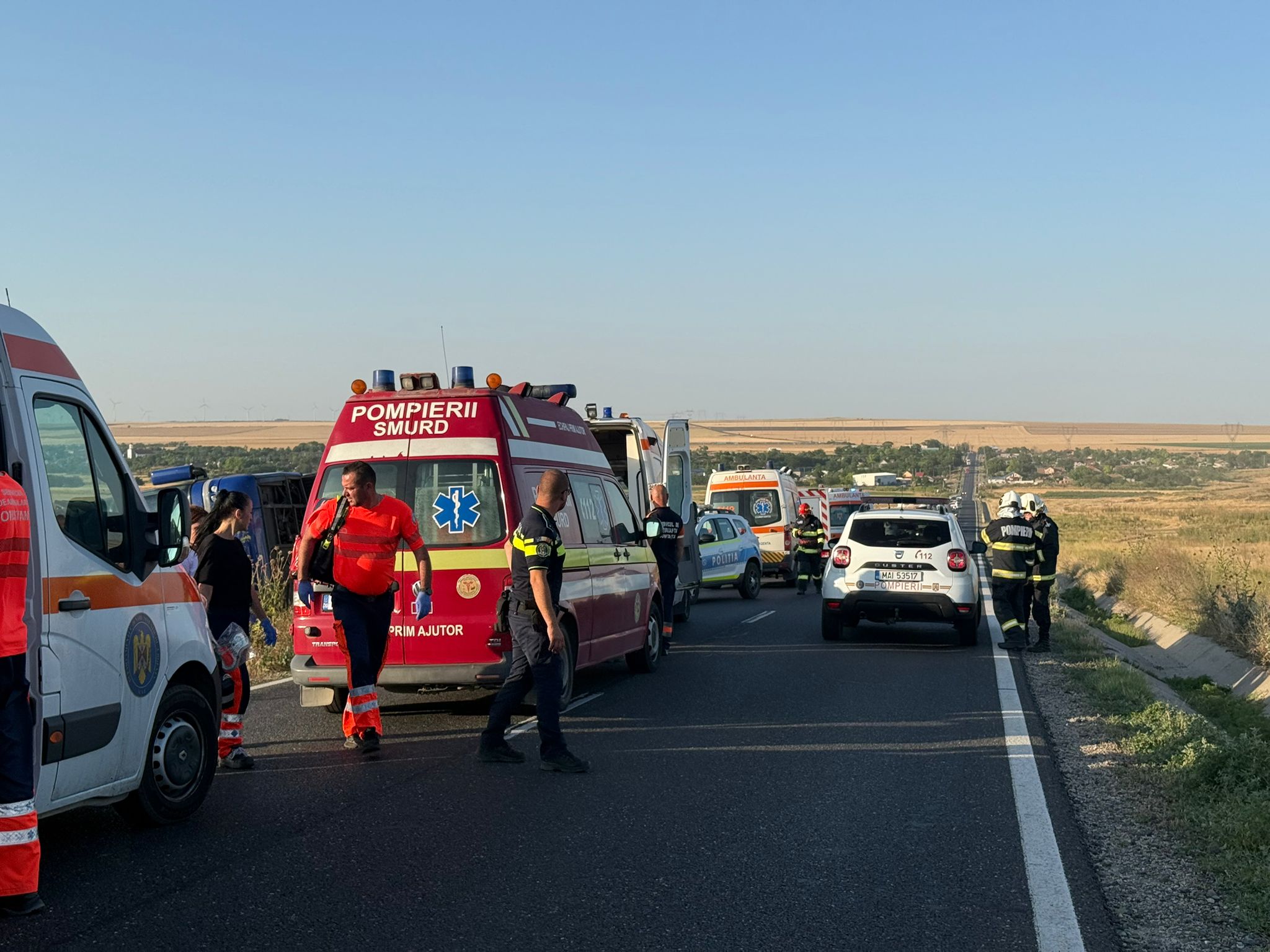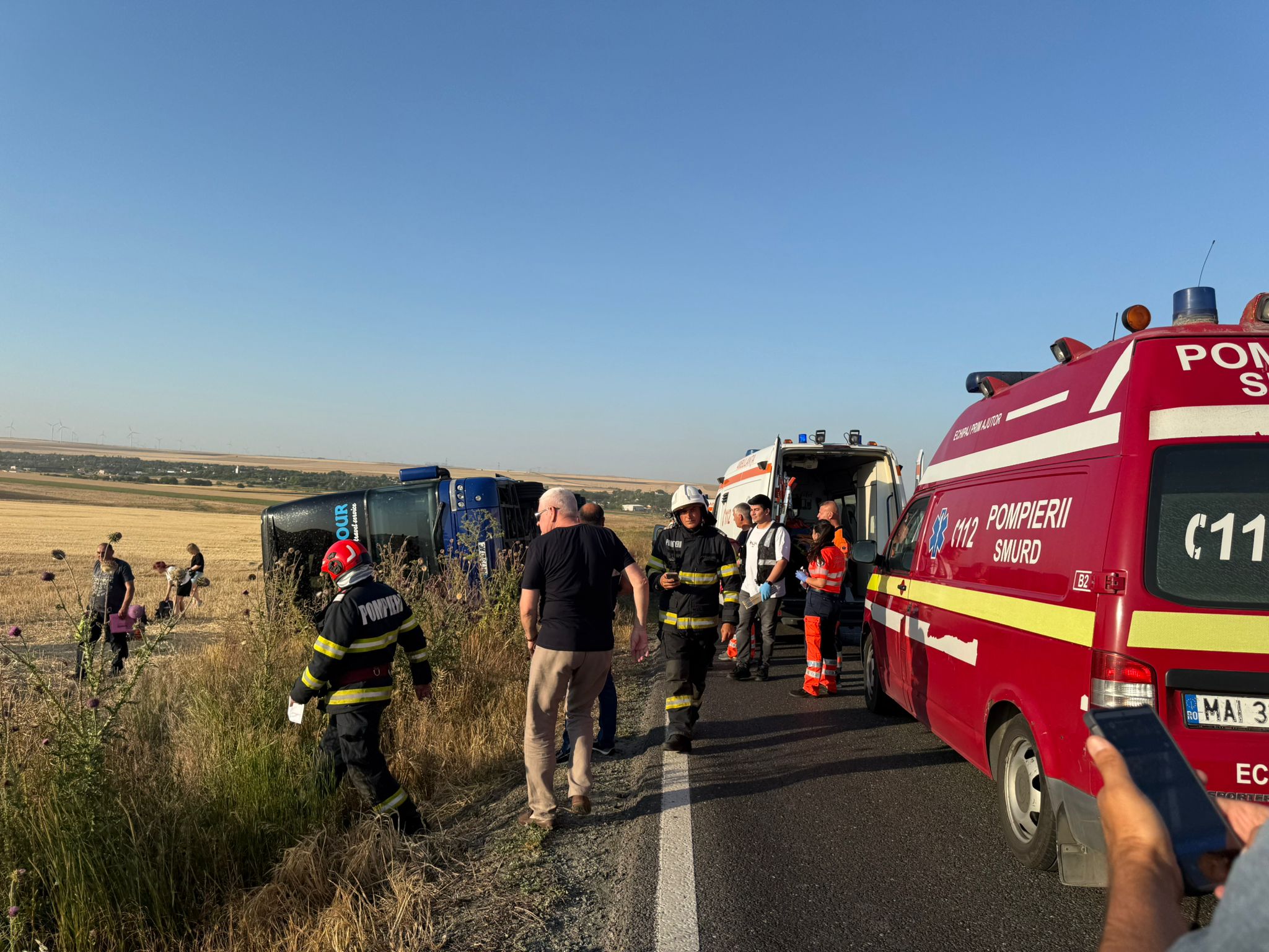 În autocar erau 37 de femei, opt bărbați, dar și nouă copii, dintre care patru persoane sunt evaluate medical și refuză transportarea la spital, a transmis ISU ”Dobrogea”.