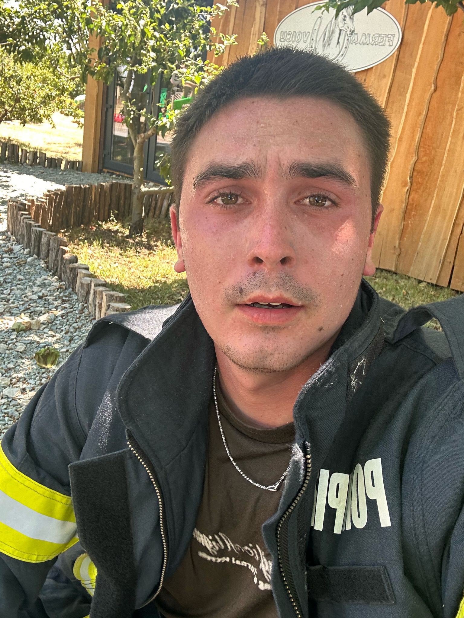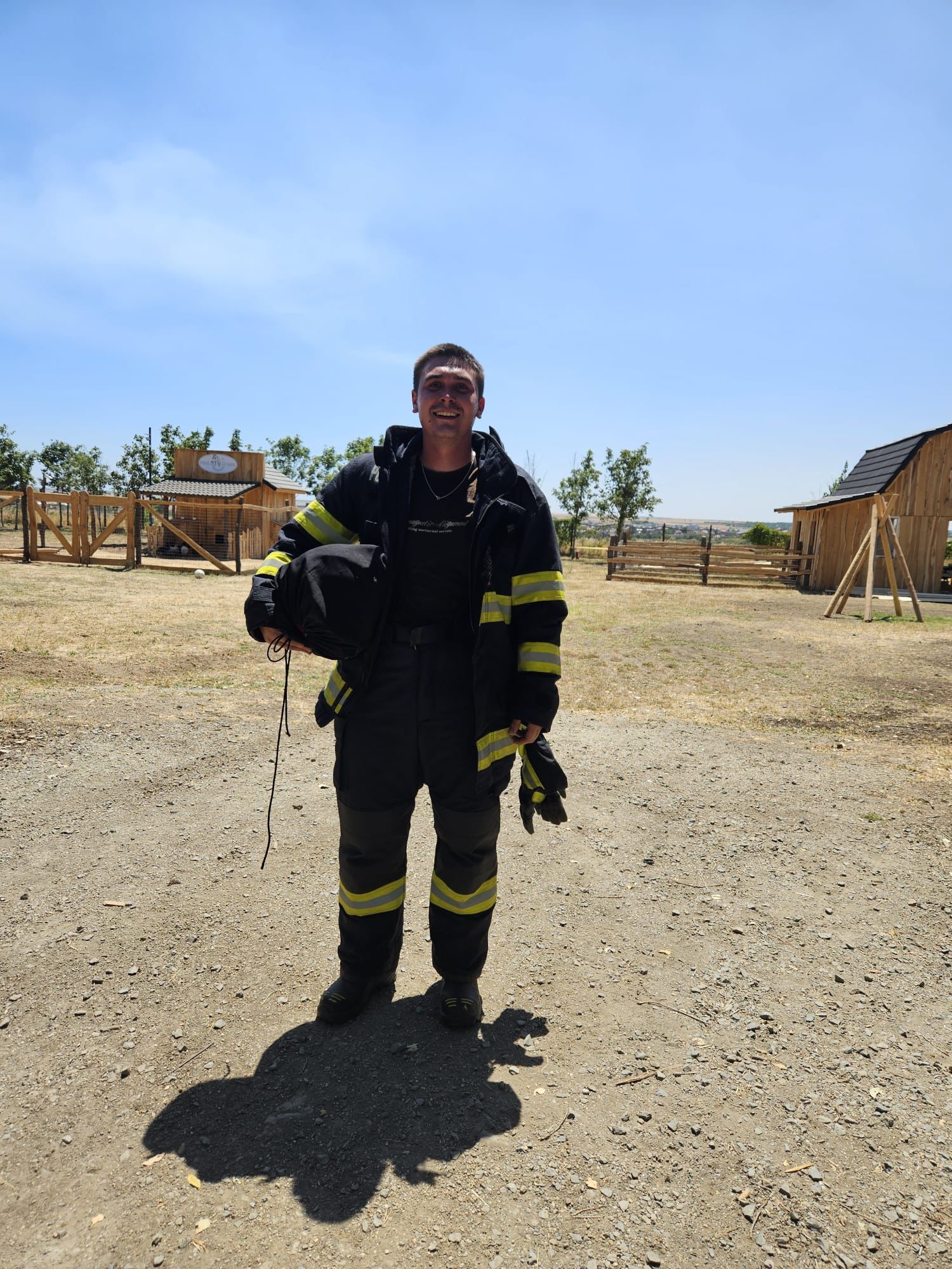 Deși se afla în timpul liber, împreună cu prietena lui, în drum spre casă, a observat fumul gros și NU a putut trece nepăsător. A oprit mașina, s-a echipat cu costumul din portbagaj și a mers direct în sprijinul colegilor care se luptau cu flăcările ce amenințau fermele din apropiere. Prietena lui nu a stat deoparte – a luat baxuri cu apă de la o fermă din zonă și, cu ajutorul unui ATV, a distribuit apă de băut către toate autospecialele implicate în intervenție. Au rămas acolo până la finalul intervenției, ajutând inclusiv la realimentarea unei autospeciale operate de un coleg detașat, care nu cunoștea zona.