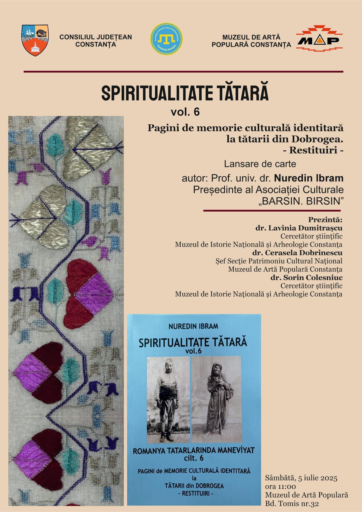 La Muzeul de Artă Populară din Constanța, se va lansa volumul cu numărul 6 din seria „Spiritualitate tătară”- Pagini de memorie culturală identitară la tătarii din Dobrogea. Restituiri”, semnat de prof. univ. dr. Nuredin Ibram.