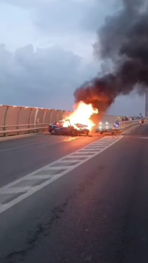 CONSTANȚA: O mașină a luat foc în urma unui accident produs aseară, pe strada Cumpenei. Șoferul avea o alcoolemie de 0,70 mg/l alcool pur în aerul expirat