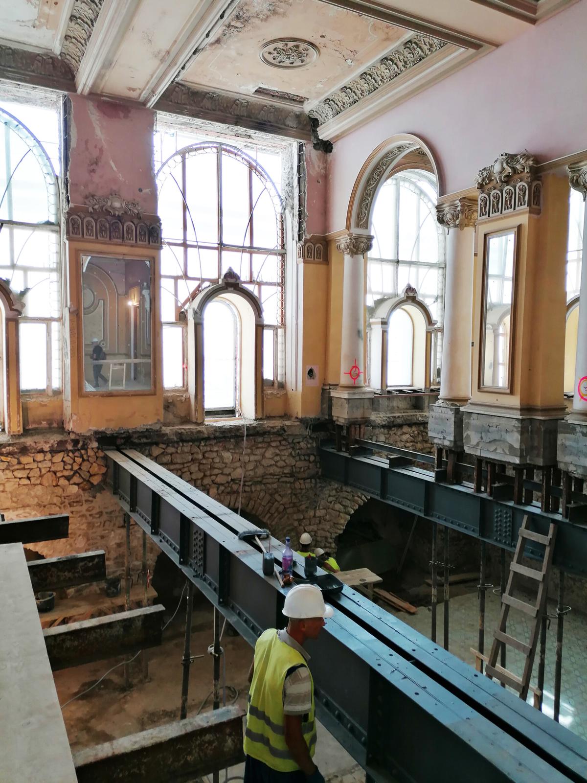 La debutul lucrărilor clădirea se afla într-o stare profundă de degradare – o acumulare cronică ale deficiențelor: degradări structurale severe, infiltrații de apă, atacuri biologice, distrugeri extinse ale componentelor artistice, instalații desființate și intervenții parazitare. Doar o parte restrânsă din materialul istoric putea fi salvată, ceea ce a impus o intervenție complexă, cu dublă direcție: restaurarea fragmentelor autentice și integrarea coerentă a unui strat nou pentru a răspunde cerințelor contemporane.