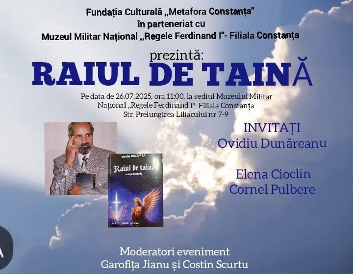Poetul și scriitorul Vasile Mizdrea lansează  romanul filosofic „RAIUL DE TAINĂ”, sâmbătă, 26 iulie 2025, de la ora ora 11.00, la Muzeul Militar Național Regele Ferdinand, filiala Constanța.