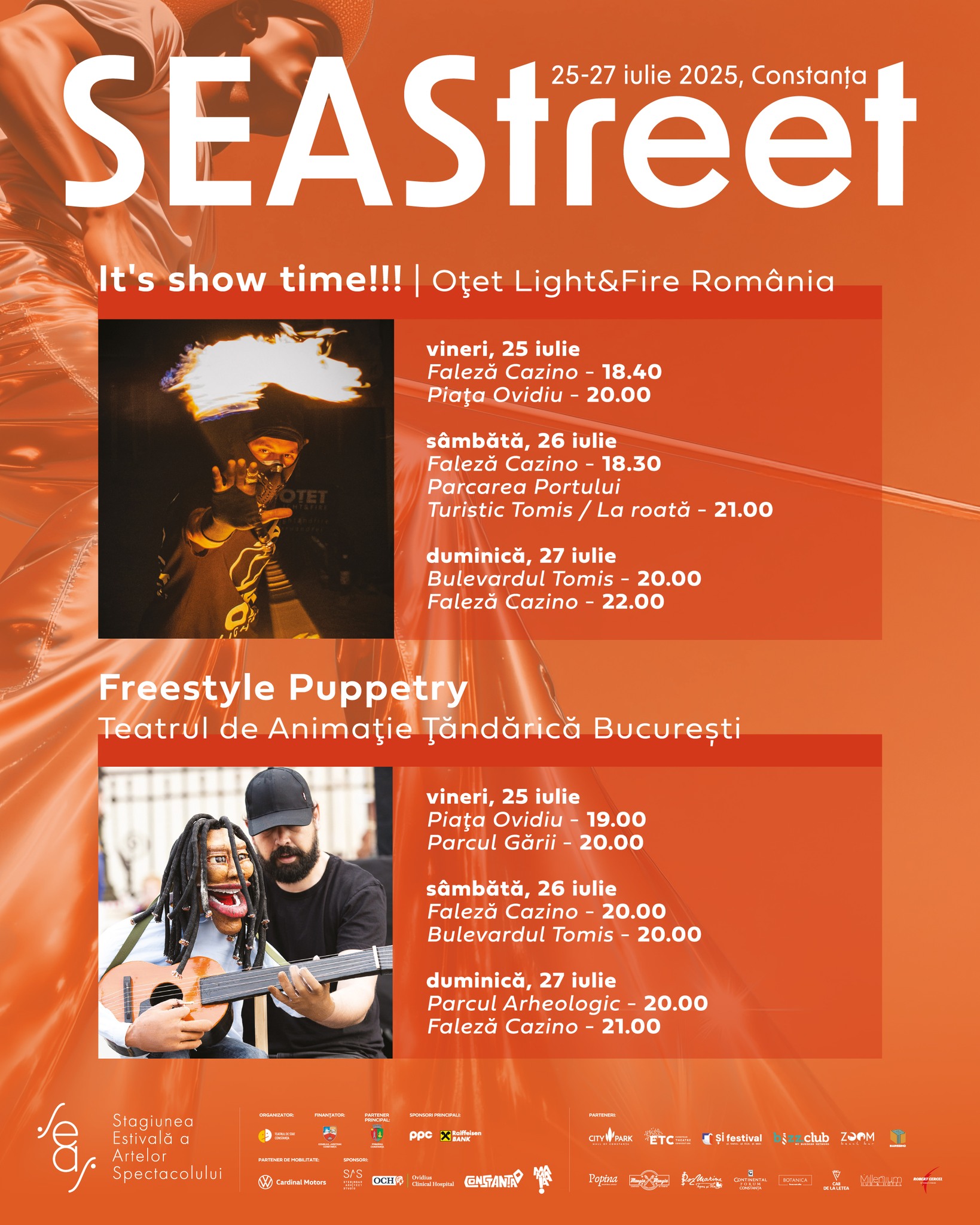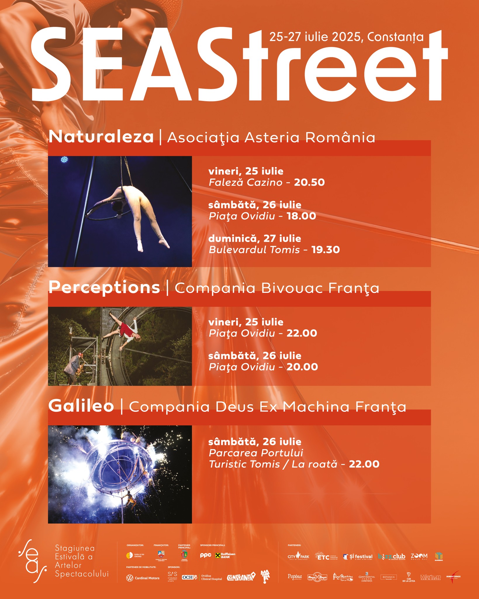 Directorul executiv  al SEAStreet, Florin Caracala,  ne-a prezentat spectacolele pe care și cei mici și cei mari le pot vedea începând cu ora 18:00 în Parcul Gării, pe Faleza Cazinoului Constanța și în Piața Ovidiu.