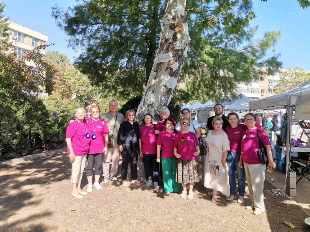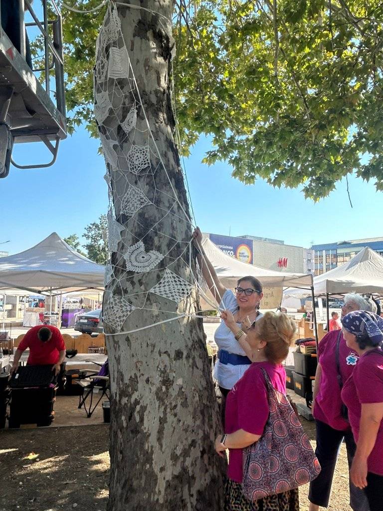 TULCEA: Un platan din Piața Civică – Copacul Croșetat Comunitar, purtătorul unui mesaj colectiv de solidaritate și creativitate