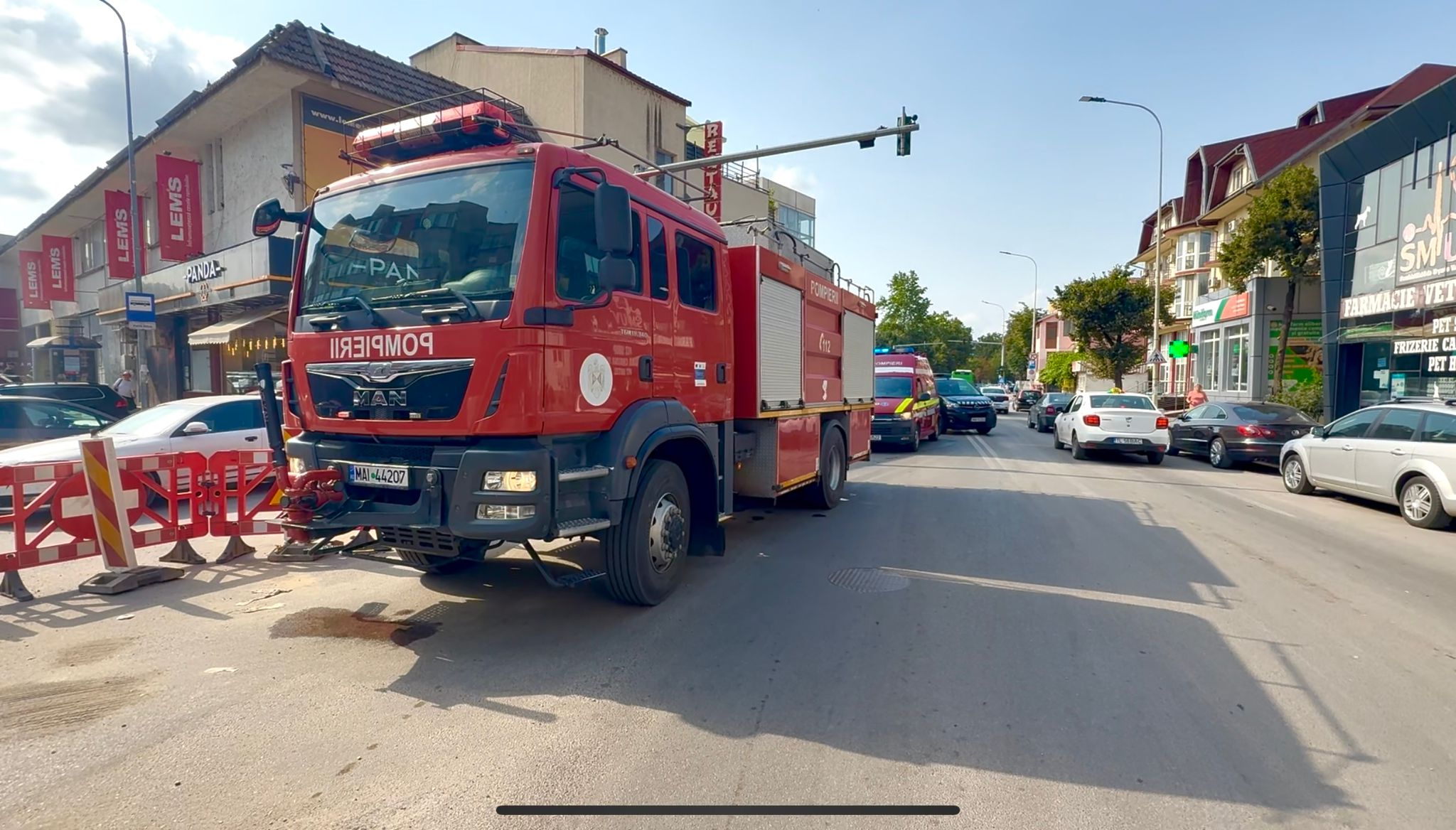 La fața locului s-au deplasat de urgență o autospecială de stingere cu apă și spumă, precum și un echipaj SMURD. La sosirea forțelor de intervenție, incendiul se manifesta cu degajări de fum la nivelul instalației electrice a unei prize. Din cauza fumului dens, și celelalte spații comerciale aflate la etajul superior au fost afectate, fiind inundate cu fum. Pompierii au acționat prompt pentru lichidarea incendiului și ventilarea clădirii, astfel încât să fie eliminat fumul din interior.