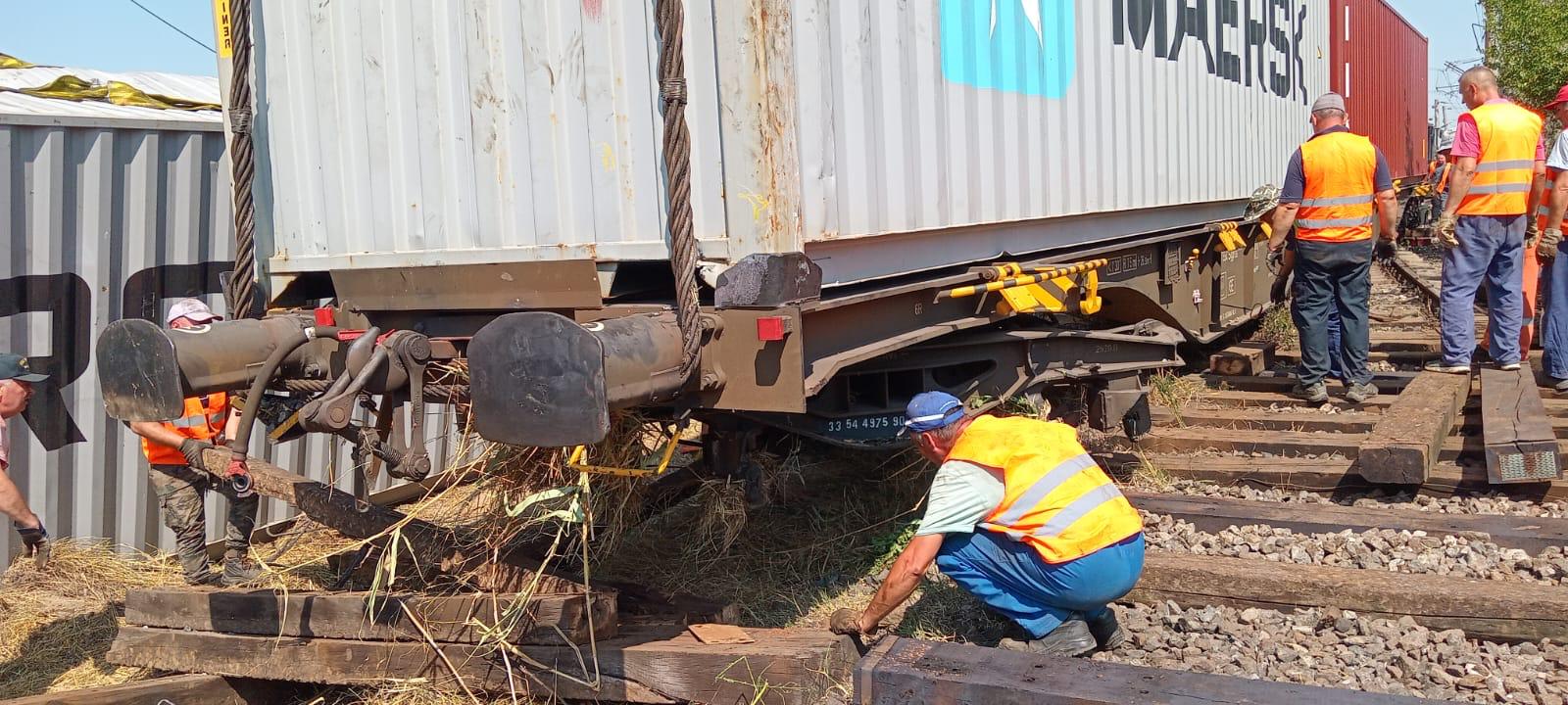 Urmează să ajungă în zonă două platforme aparținând TFG (operatorul privat de marfă implicat în deraiere), care să încarce materialul rulant deraiat și răsturnat (două vagoane, inclusiv containerele transportate de acestea).