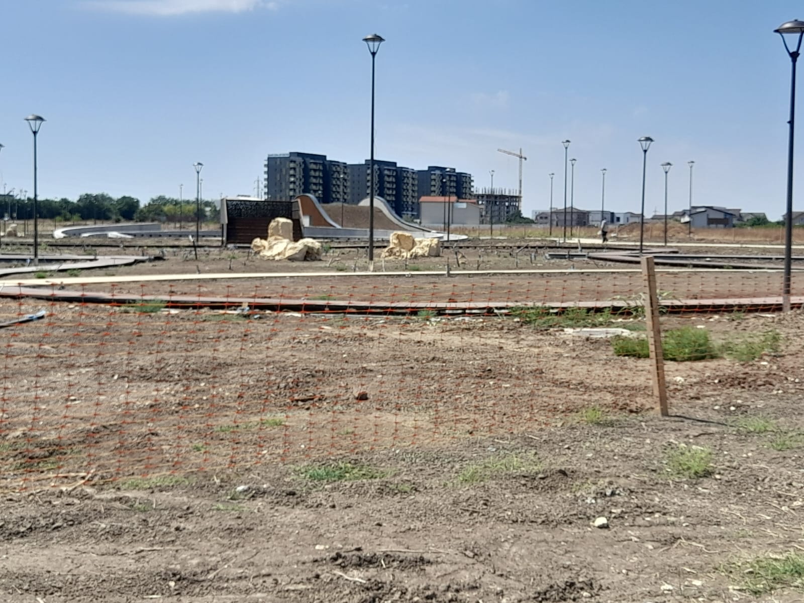 Însă miercuri, la ora prânzului, niciun muncitor nu se afla pe șantier. Conform panoului de la intrare, termenul de finalizare era 14 iulie 2025. În cazul parcului din Inel 2, lucrările nu au început.