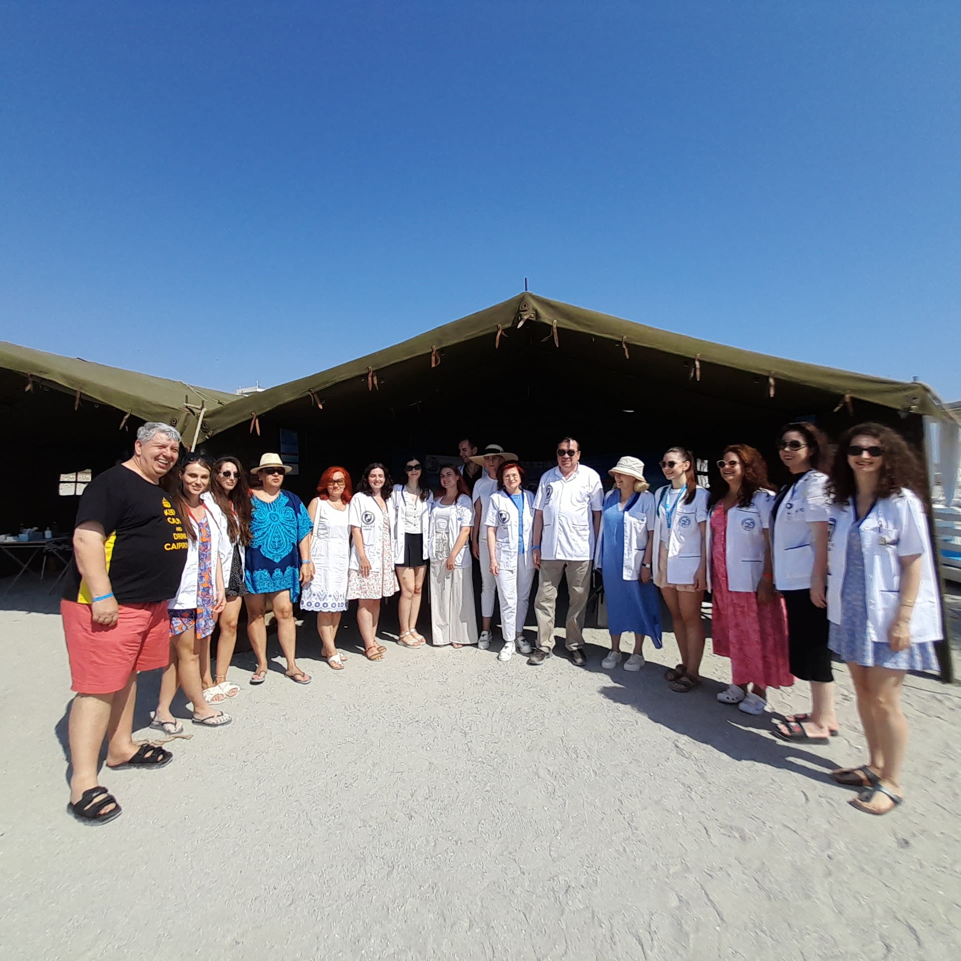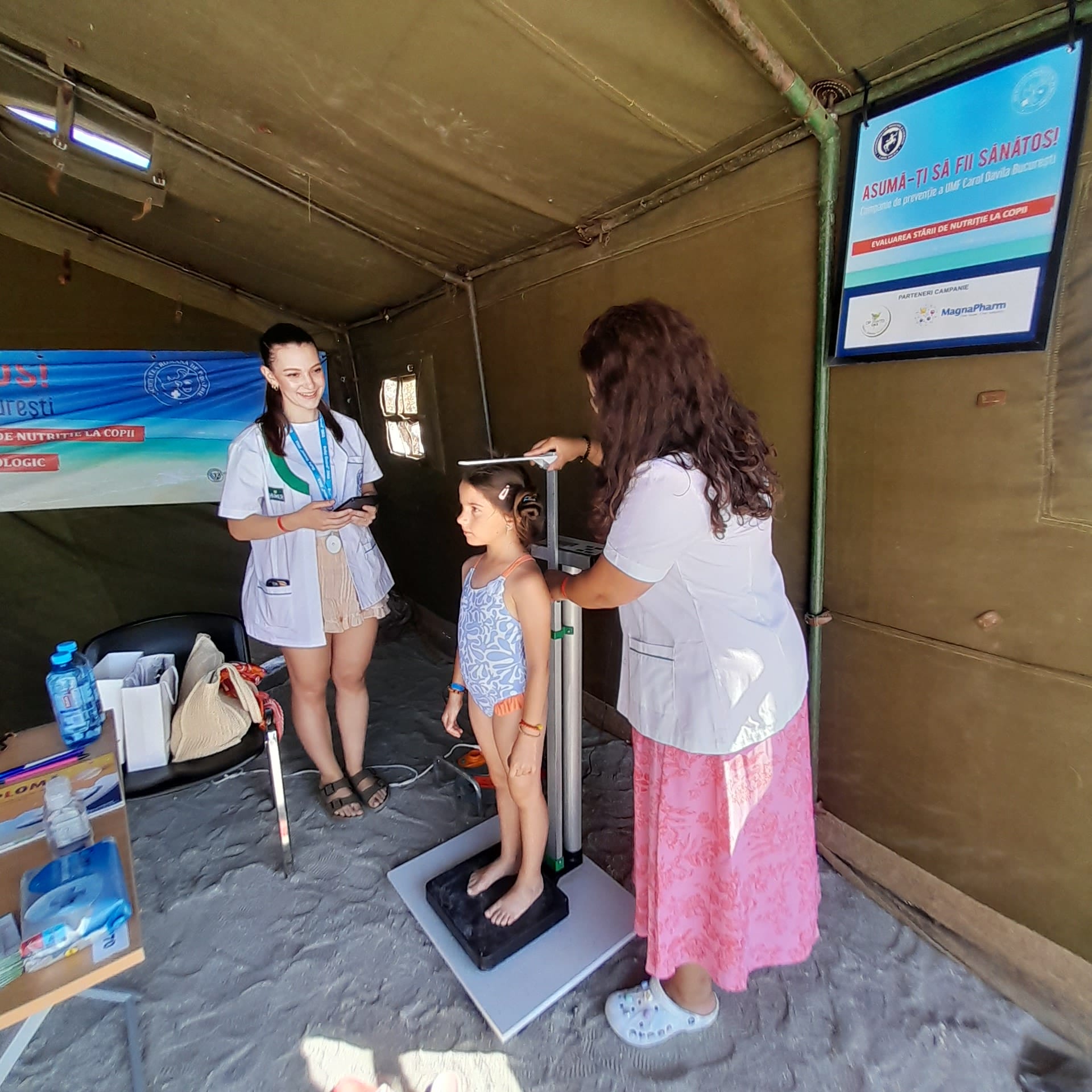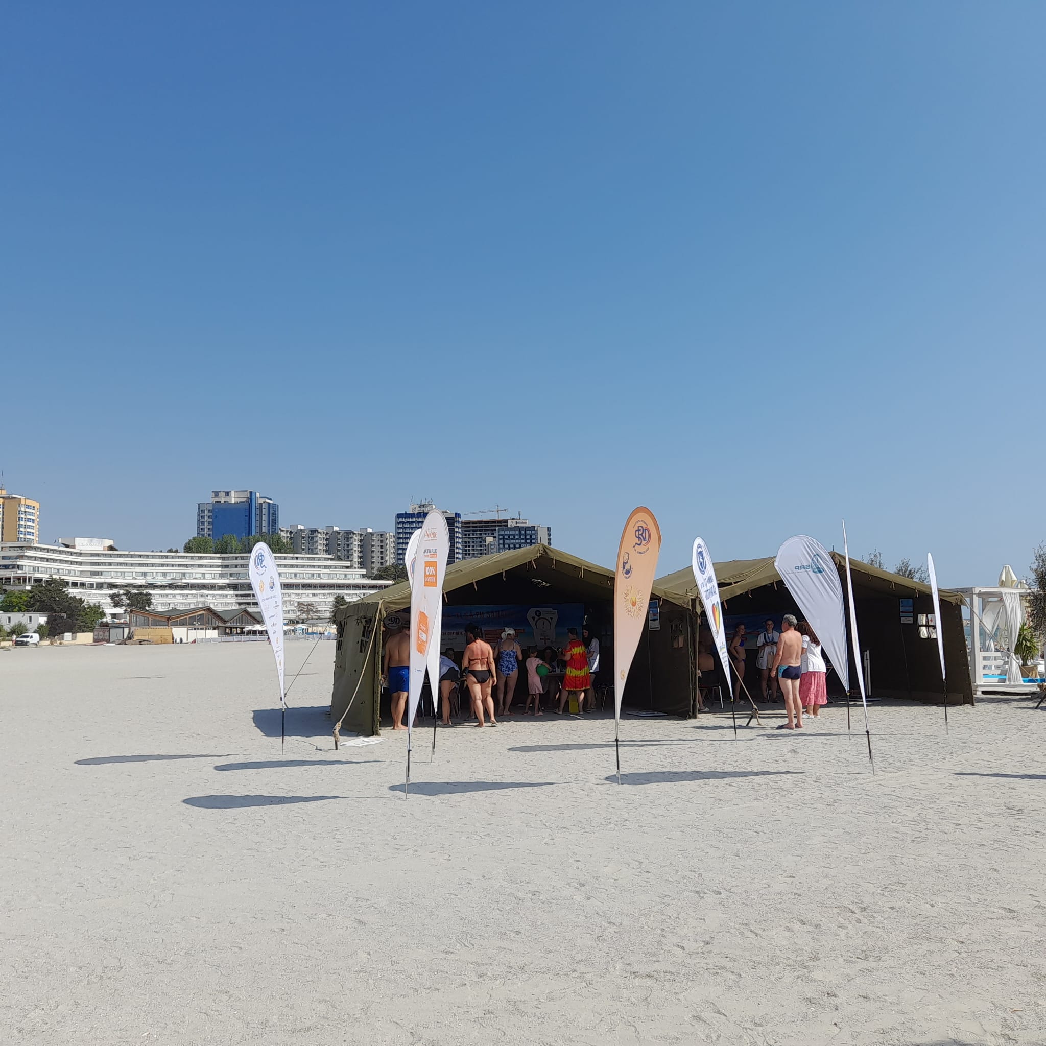 Pe plaja din Olimp, la fel ca în cele din Mangalia, Saturn, Neptun și Jupiter, corturi mari de armată sunt transformate în cabinete de pediatrie, pneumologie, endocrinologie și dermatologie. Într-unul dintre corturi, un medic rezident cântărește și măsoară înălțimea unei fetițe, alături un alt doctor tânăr îi explică unui bărbat cum se face o spirometrie. Uneori se formează cozi, în special acolo unde dermatologii oferă consultații, dar oamenii sunt interesați și de sfaturile endocrinologilor. Turiștii sunt încântați că pot beneficia de evaluări fără programare și fără costuri. “Este o acțiune minunată și benefică. Dacă vrei să mergi la un specialist, trebuie să duci la medicul de familie să iei bilet de trimitere, cu bilet de trimitere trebuie să aștepți până îți vine rândul. Așa e foarte bine”, ne-a spus o turistă din Brașov, care a trecut pe la toate cabinetele, împreună cu fiica sa. “E un lucru bun. Poți să beneficiezi de un consult la care, în mod normal, nu te-ai duce”, ne-a mărturisit un turist din București, care își aștepta rândul la o examinare dermatologică. “O chestie de aici poate merge mai departe. Dacă ți se semnalează ceva grav, te poți duce mai departe să îți faci investigații la tine acasă sau unde știi tu mai bine”, ne-a declarat o altă turistă din județul Brașov.