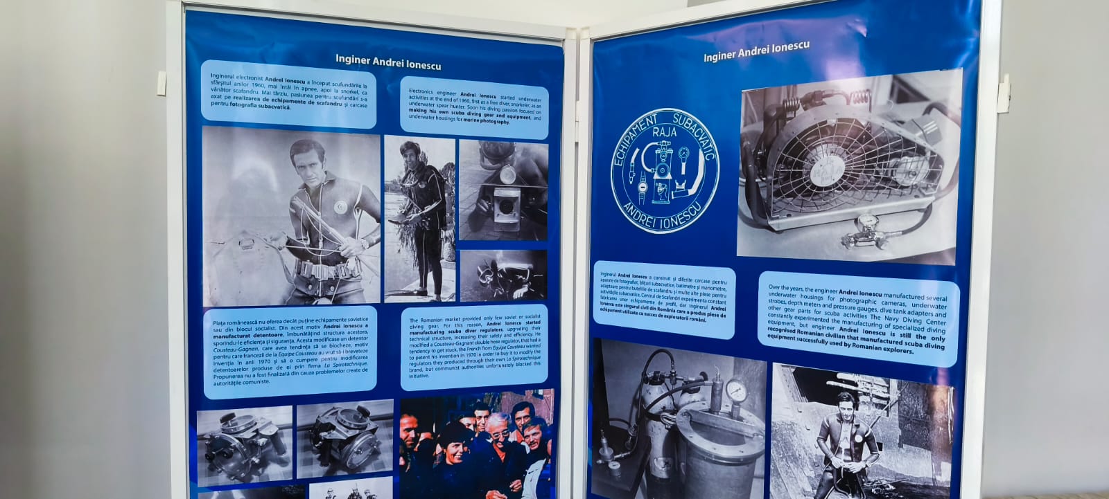 Până în luna noiembrie, în foaierul Delfinariului Constanța putem descoperi o expoziție inedită, dedicată celor 70 de ani de Scafandrerie Autonomă în România.