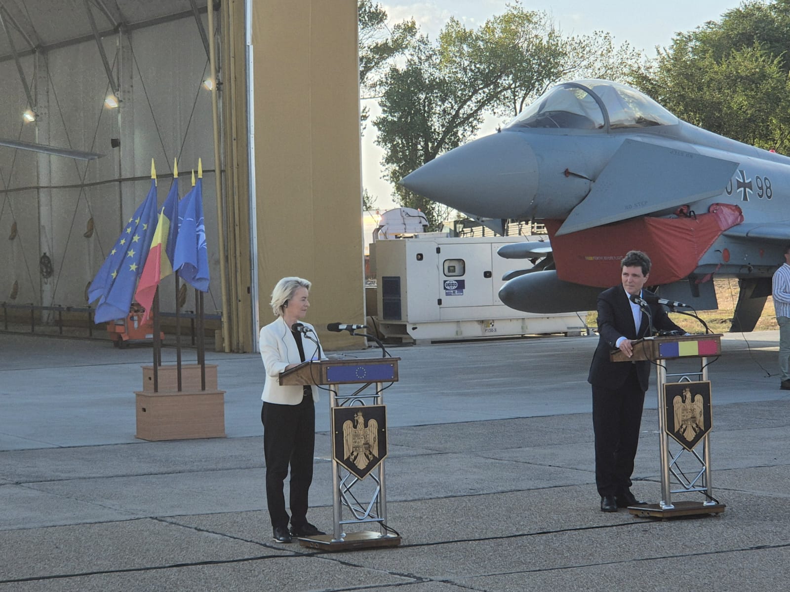 Voi continuați să țineți Europa în siguranță, în aer, maritim, pe Marea Neagră și, mai mult decât atât, România este un punct-cheie pentru securitatea Europei și un partener-cheie pentru flancul estic al NATO. În ultimele luni, România a arătat o rezistență impresionantă a democrației și instituțiilor sale. Ați făcut față cu succes dezinformărilor și manipulărilor, a declarat Ursula von der Leyen.