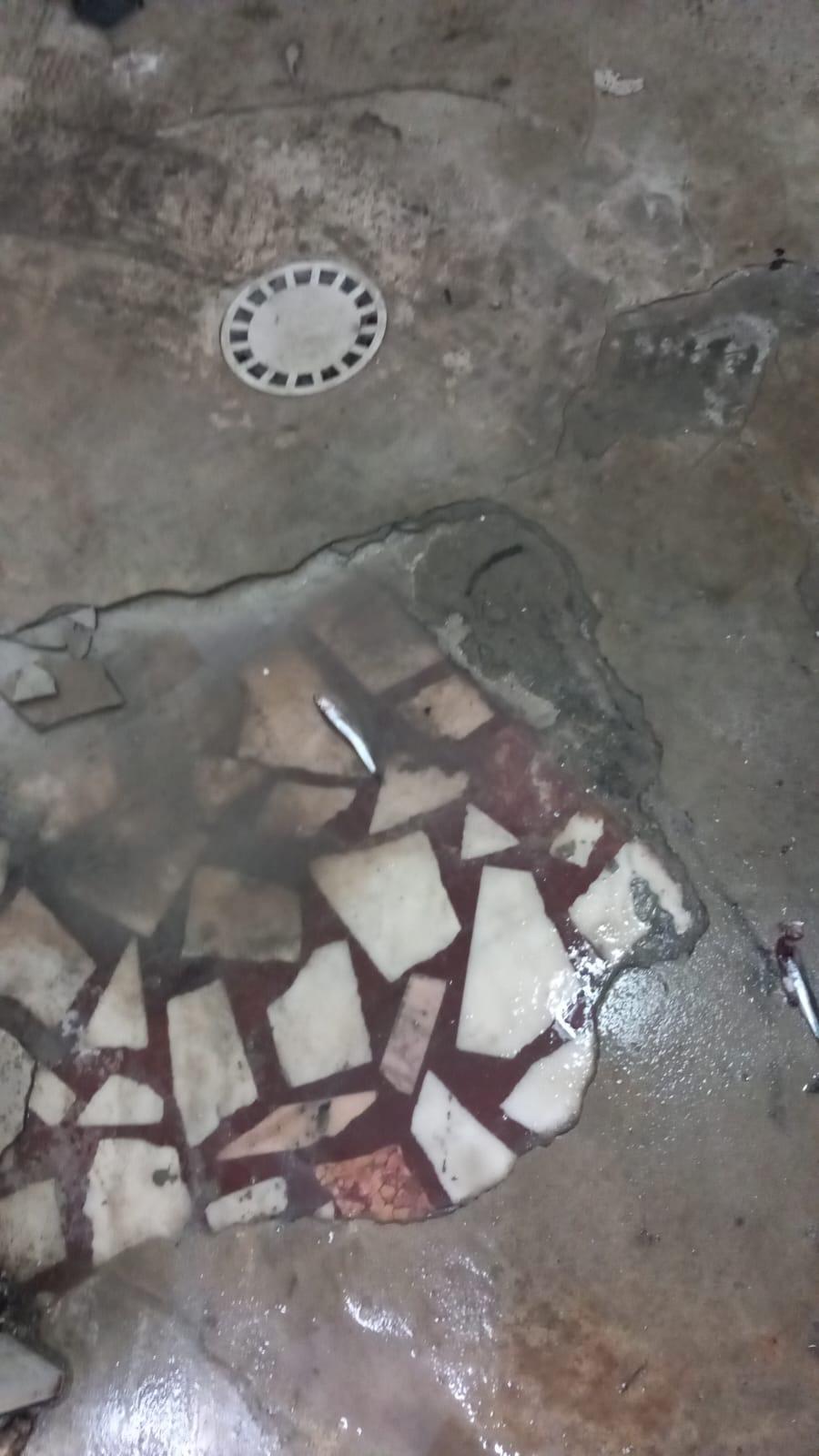 Paviment depreciat, cu depuneri grosiere de impurități.