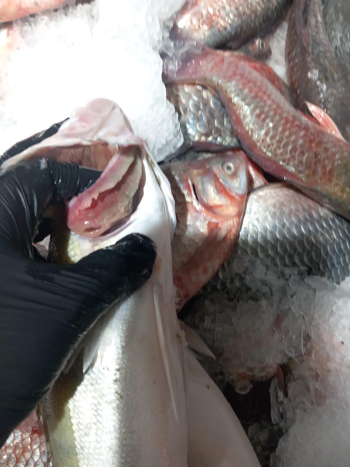 Deteriorări organoleptice ale peștelui, precum opacitatea ochilor, consistența moale a abdomenului și modificări de culoare la nivelul branhiilor.