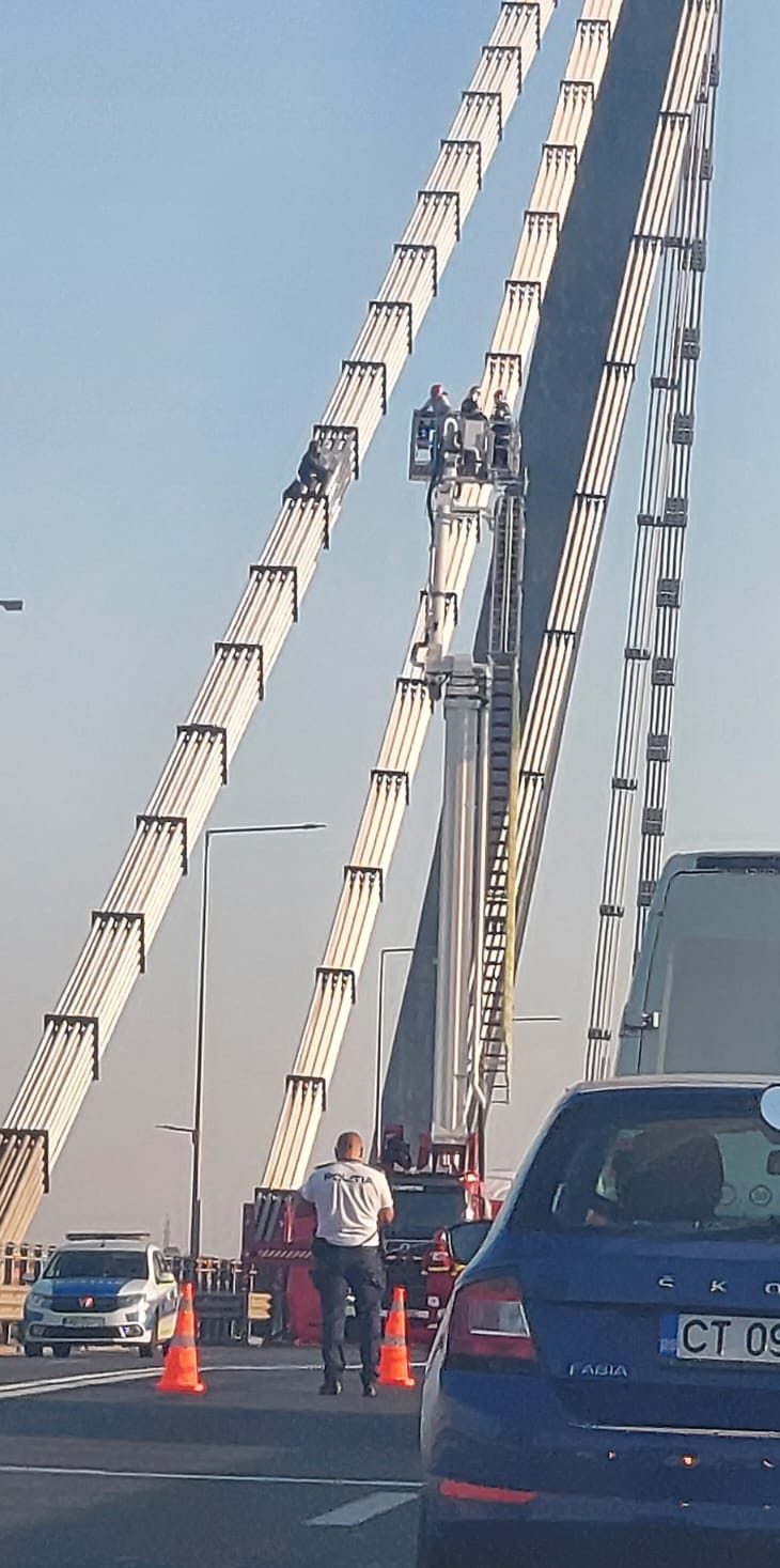 UPDATE ora 12.15: Bărbatul care s-a urcat pe structura metalică a podului Agigea, azi-dimineață, de unde a amenințat că se aruncă în gol, a coborât în siguranță, după mai multe ore de negocieri.