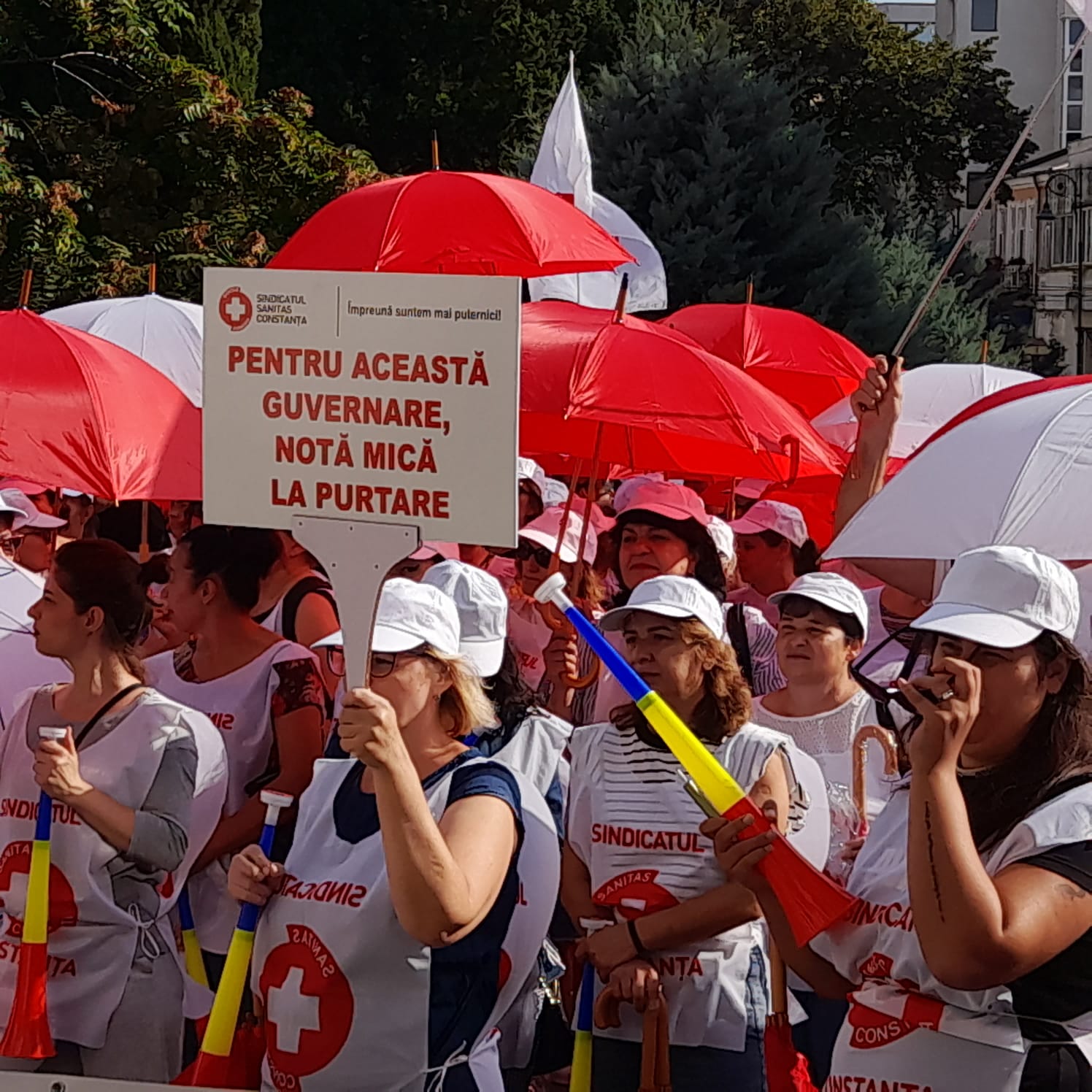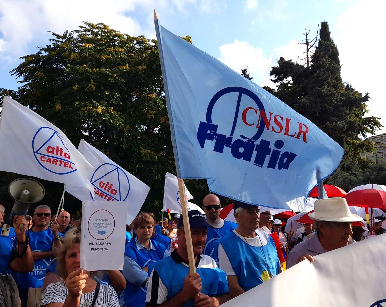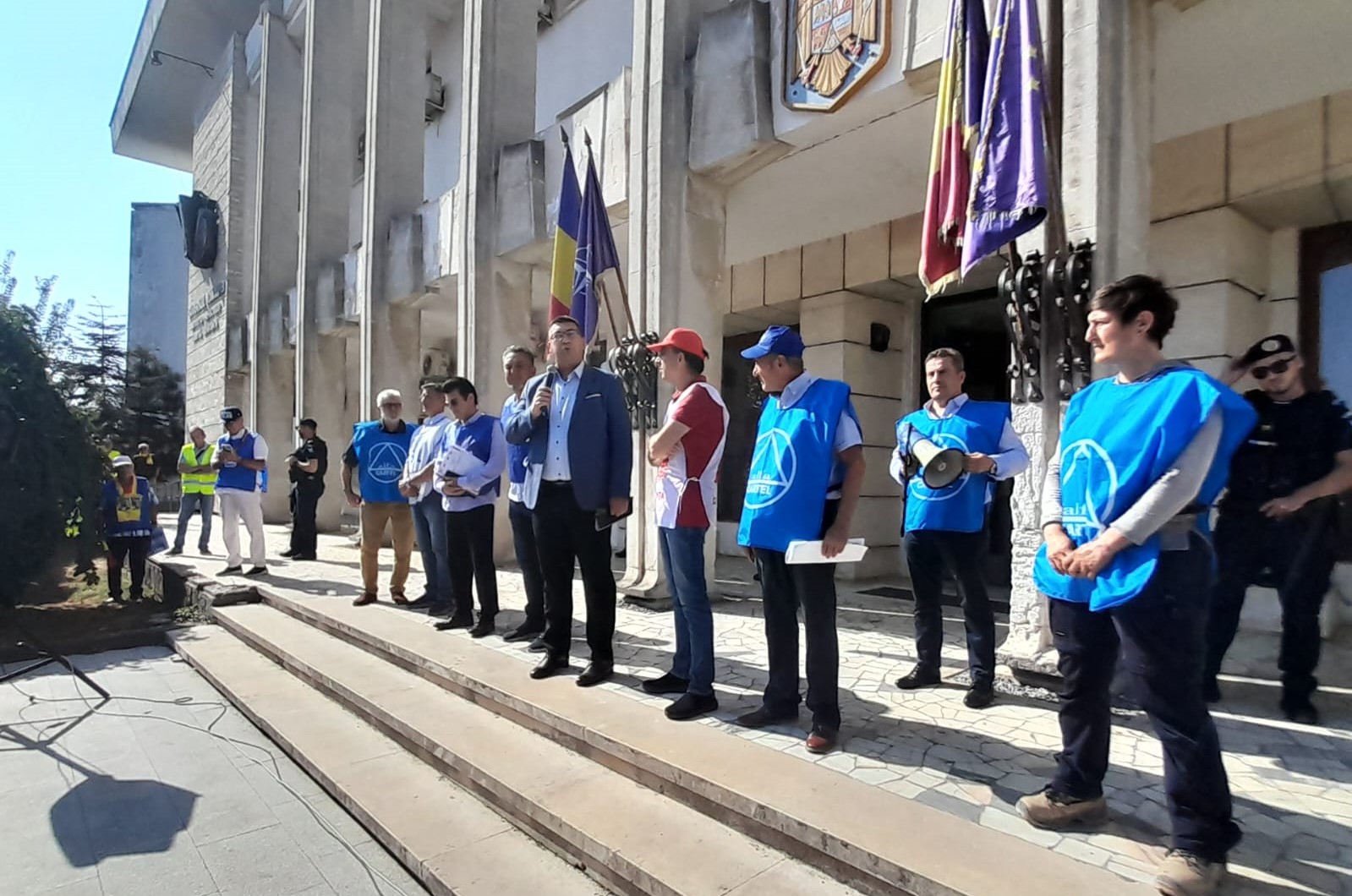 Sute de sindicaliști din patru mari confederații – CNSLR Frăția, Cartel Alfa, Confederația Sindicatelor Democratice din România și Confederația Sindicatelor Naționale Meridian – au protestat, miercuri, în fața Prefecturii Constanța.