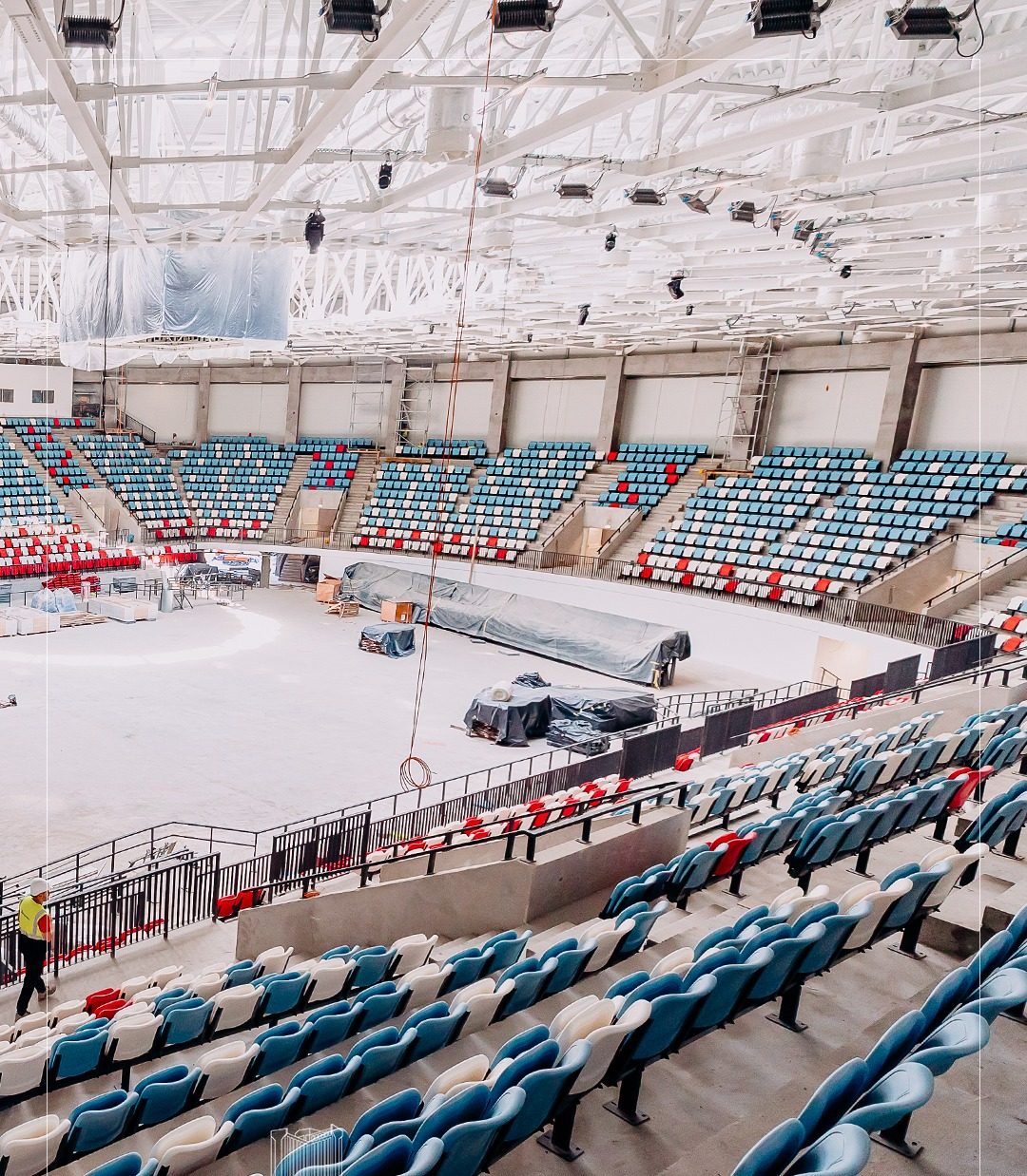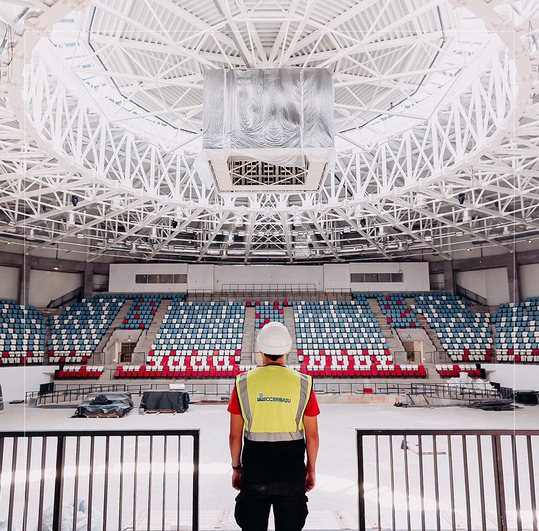 Am finalizat montajul cubului multimedia, al tribunelor retractabile și al sistemelor de iluminat și sonorizare. În prezent, finalizăm montarea scaunele și pregătim suprafața pentru parchetul sportiv, în timp ce lucrările de finisaje, instalații și amenajările exterioare avansează rapid. Sala va beneficia de un teren principal de competiții, înconjurat de tribune pentru spectatori cu o capacitate de până la 4.670 de locuri, un teren de antrenament situat în subsolul clădirii, sub amprenta terenului principal, parcare subterană, vestiare pentru echipe și oficiali, spații pentru presă și sală de conferințe, transmit reprezentanții constructorului.