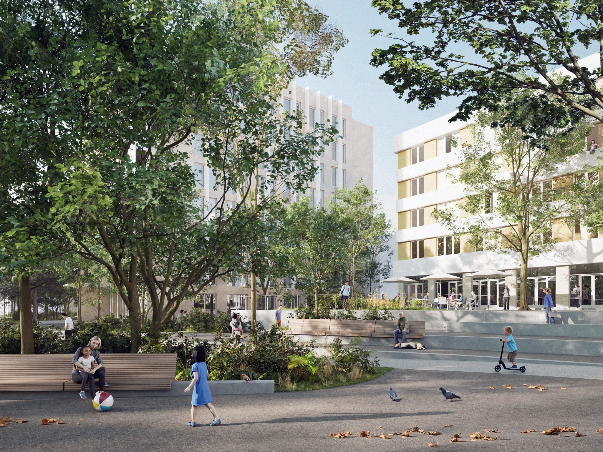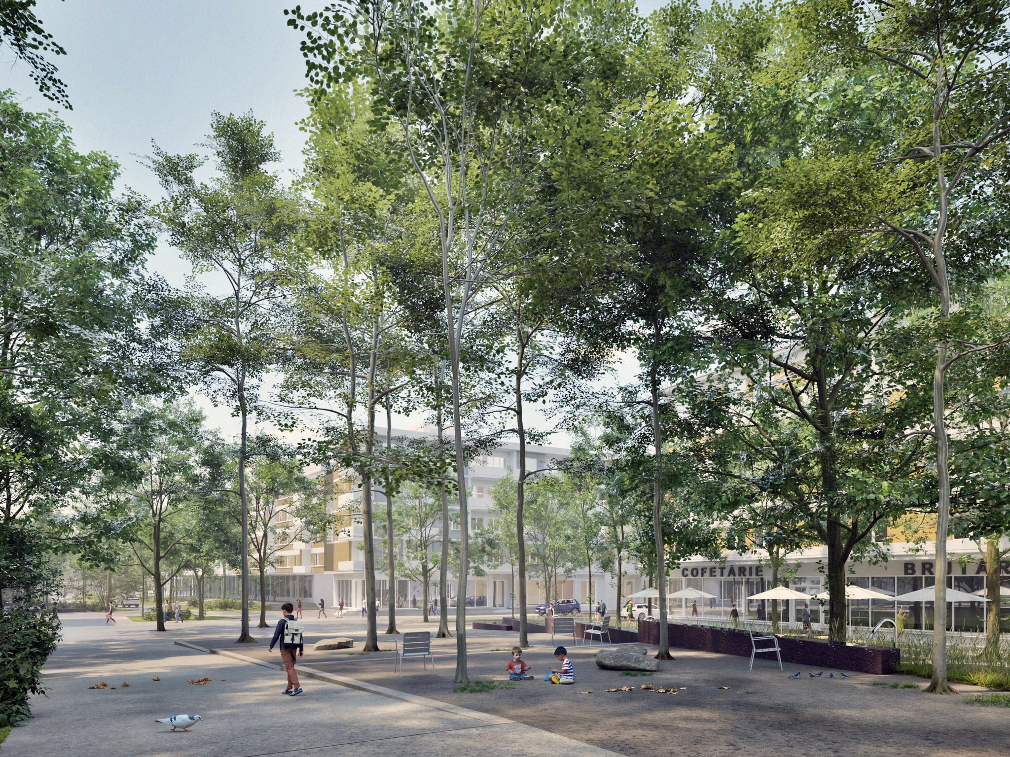 „Poate că cel mai evident aspect al proiectului este o extindere a zonei cu arbori, care ar încerca să asigure pe toate traseele principale un flux coerent și fluid la umbră. Am încercat să păstrăm liberă, fără nimic deasupra capului, zona de piață, care are nevoie neapărat de această funcție simbolică, de deschidere, de reprezentare, care nu prea se poate petrece sub copaci. Am prevăzut, totuși, zone minerale sub copaci pentru activități cum ar fi târguri, piețe volante, lucruri legate de viața cotidiană și de activitățile mai puțin formale ale cetățenilor. Acestea am considerat că se pot petrece la umbră și de aceea am prevăzut și zone utile sub coronamentul arborilor.”