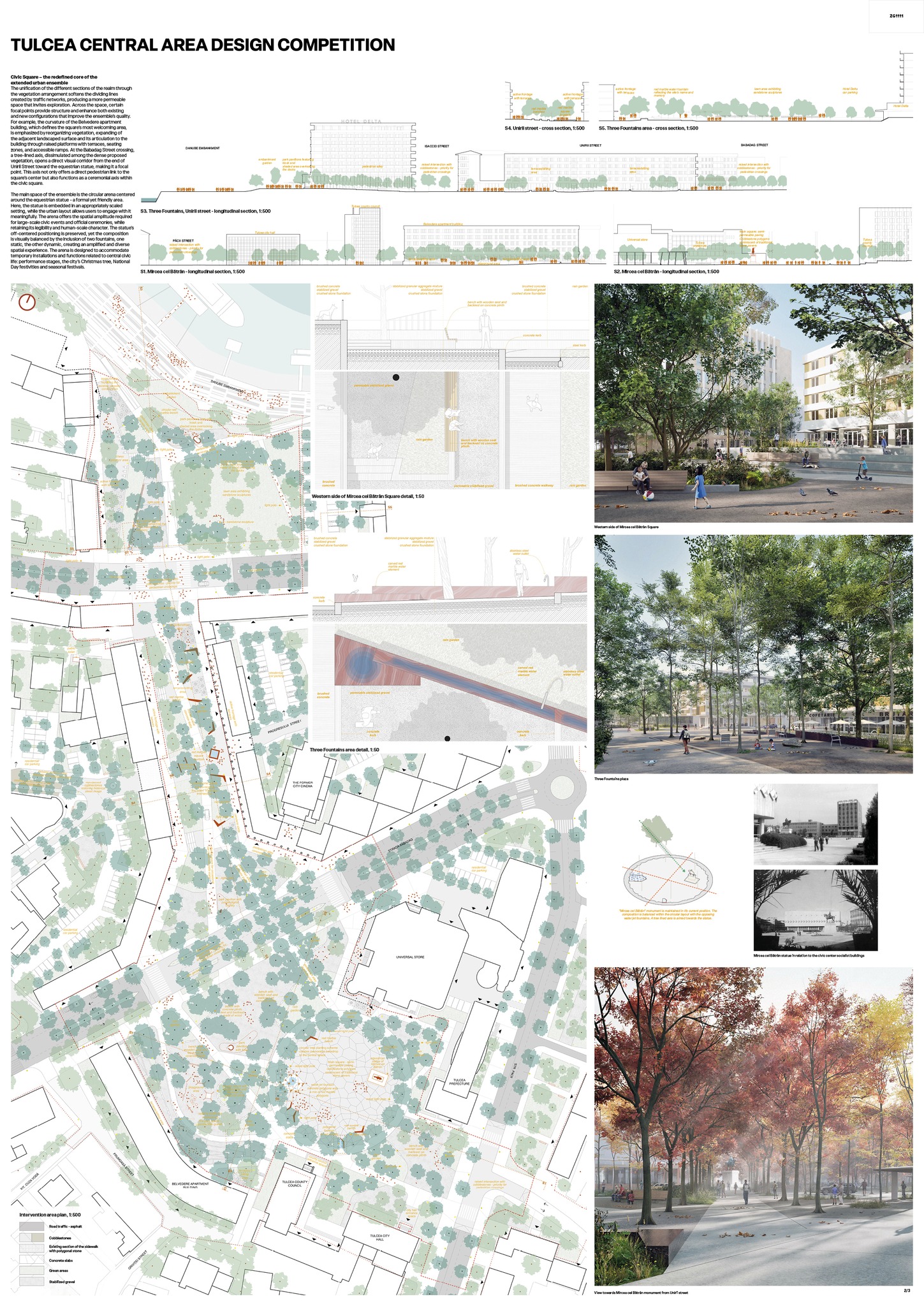 Cum poate fi reimaginat centrul orașului Tulcea, astfel încât să răspundă provocărilor climatice de azi și, totodată, să țină cont de particularitățile identitare ale acestui spațiu? Aceasta a fost întrebarea cheie la care au încercat să răspundă echipele de arhitecți care au participat la Concursul Internațional de Soluții pentru regenerarea zonei centrale – un proiect major ce vizează Piața „Mircea cel Bătrân”, strada Unirii și zona „Trei Fântâni”. Miza intervenției este una cel puțin ambițioasă: transformarea centrului sufocat de betoane și mașini într-un spațiu mai primitor, mai  verde și mai adaptat la nevoile comunității.